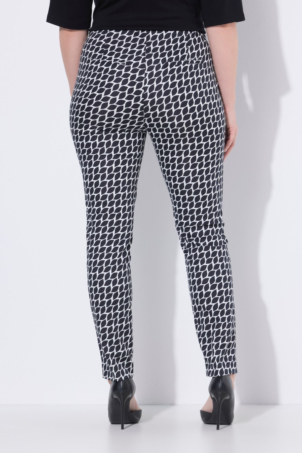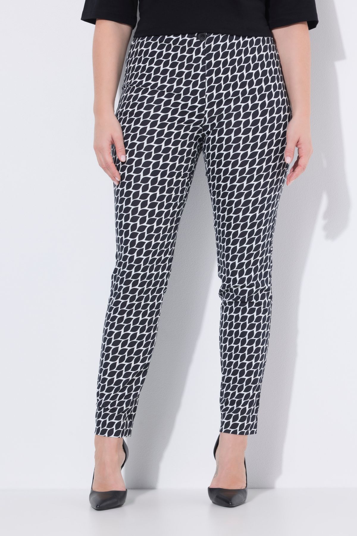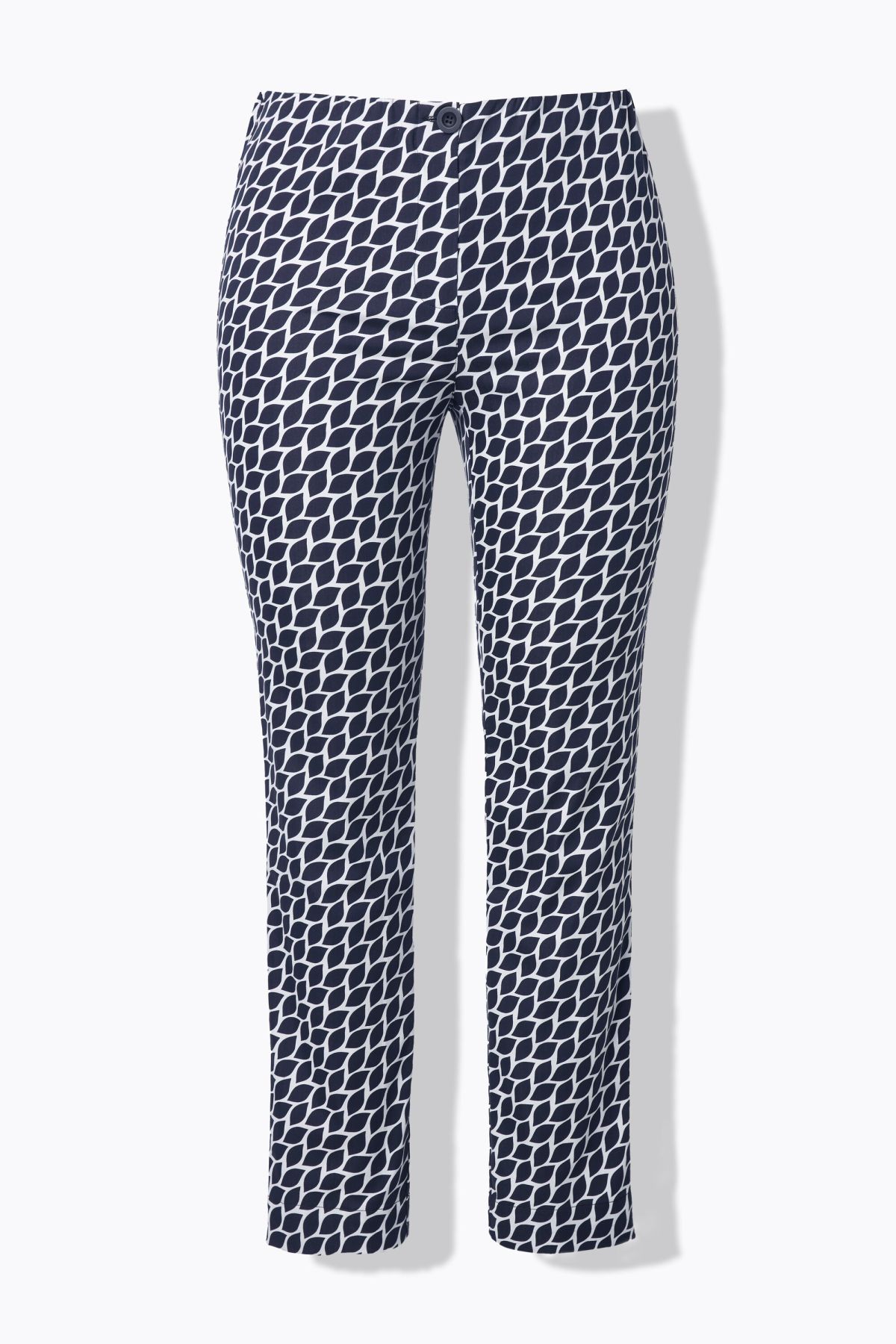 Motif graphique, Jambe étroite, Taille élastique avec bouton et fermeture à glissière, Deux fausses poches à l'arrière, Matière agréablement élastique, Entrej. env. 78 cm.