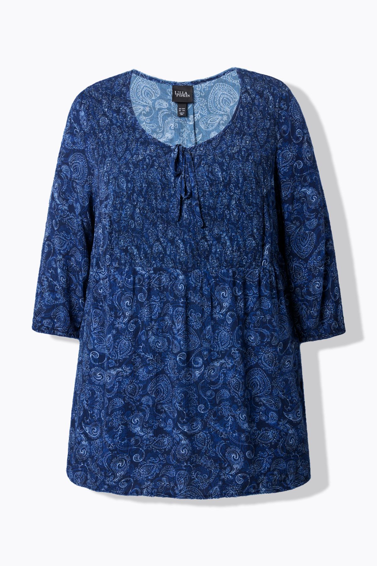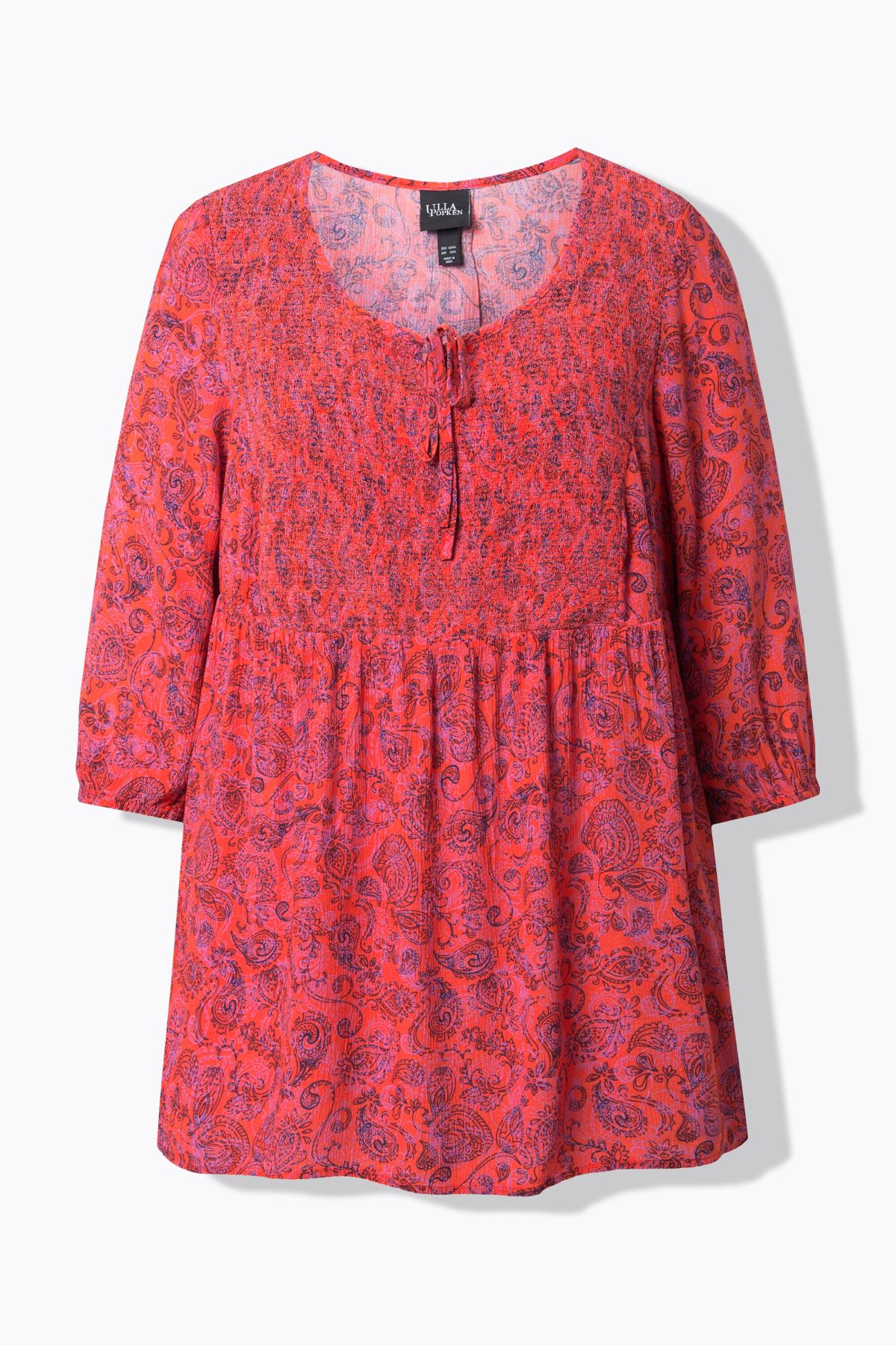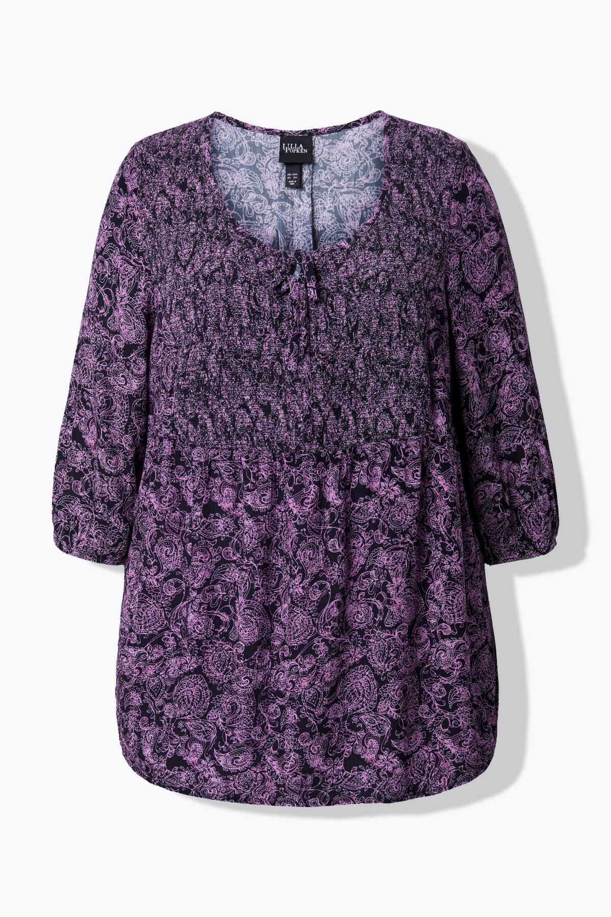 Blouse smockée, décolleté rond et manches 3/4, pli d'aisance dans le cos
