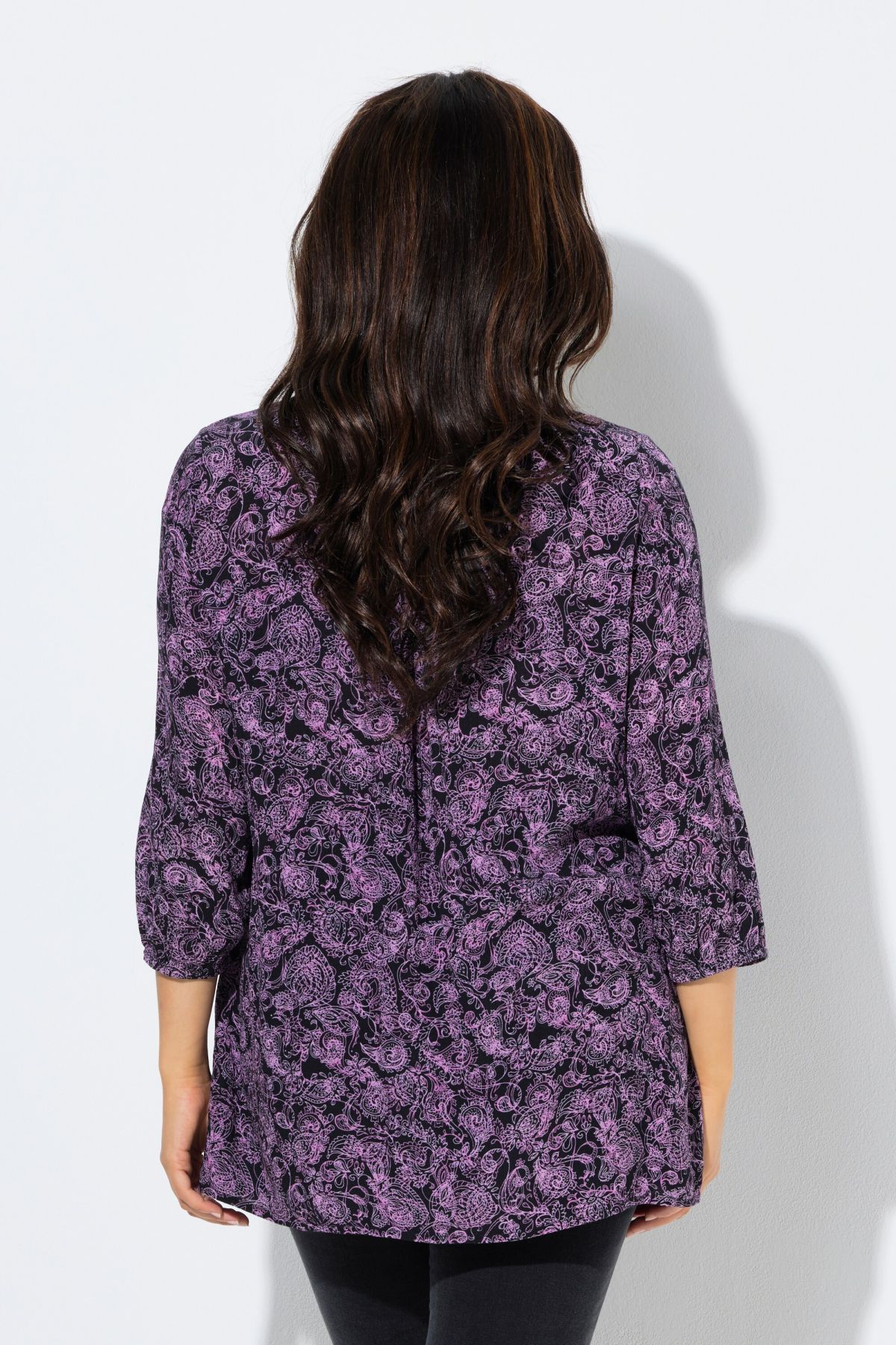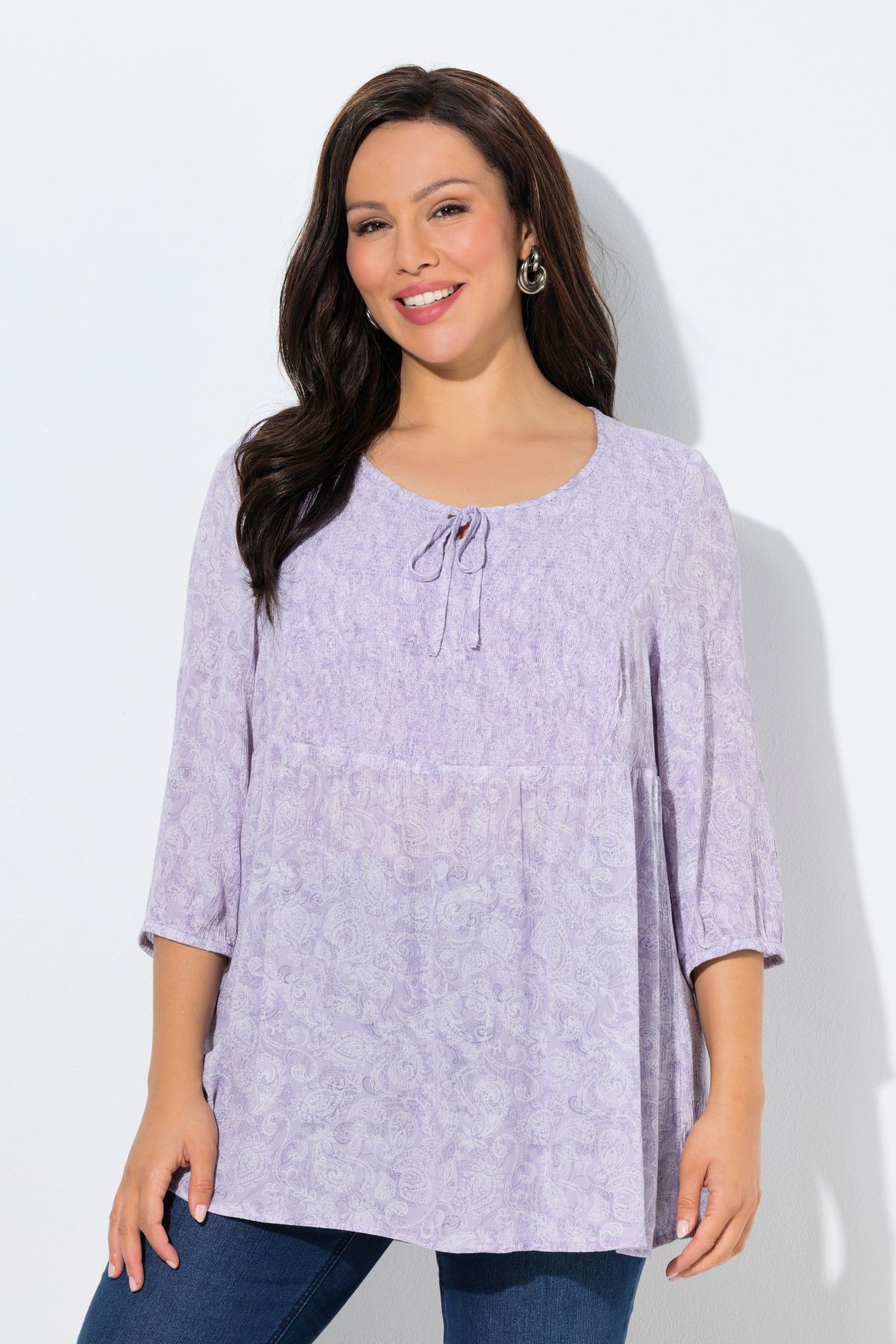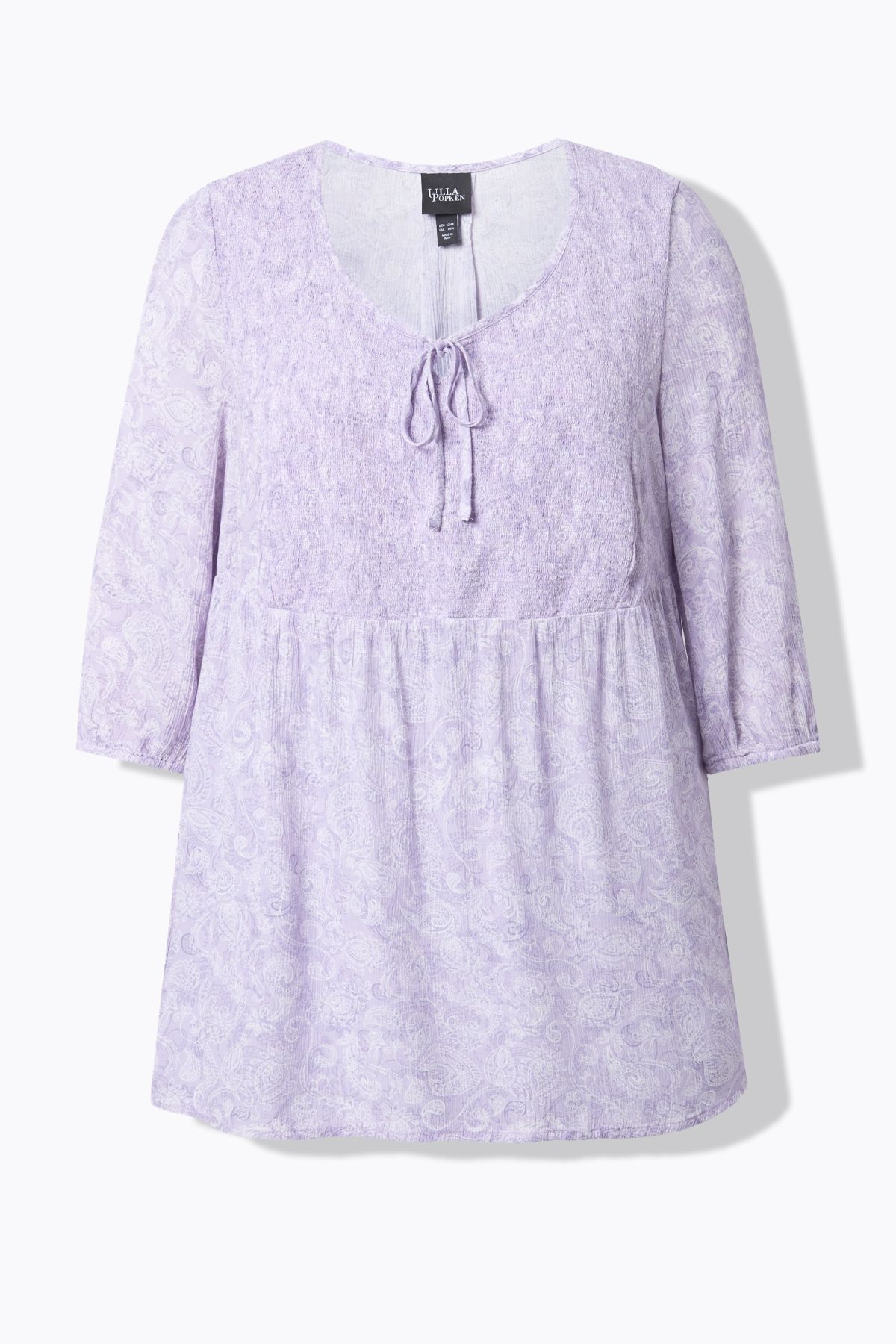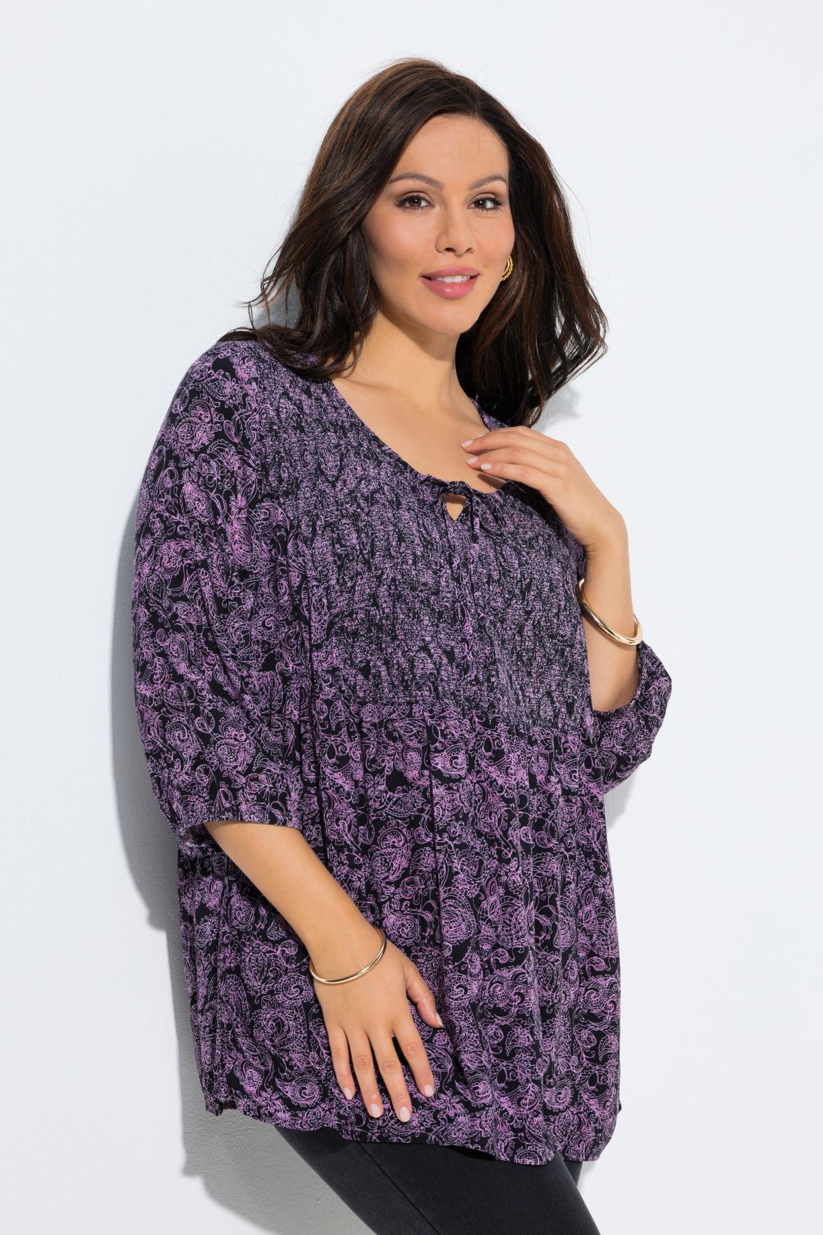 Blouse smockée, décolleté rond et manches 3/4, pli d'aisance dans le cos