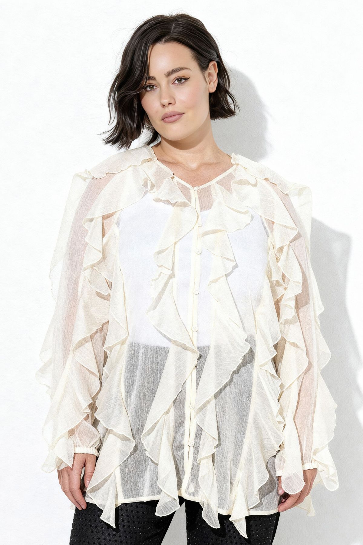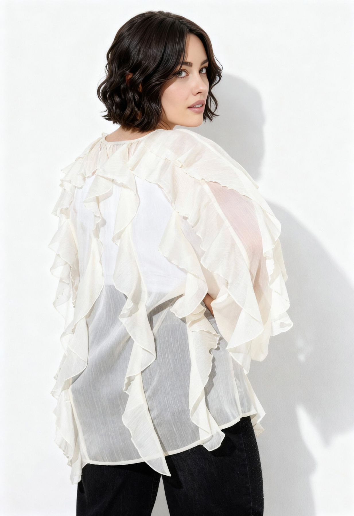Blouse à volants, coupe évasée, décolleté en V et manches longues