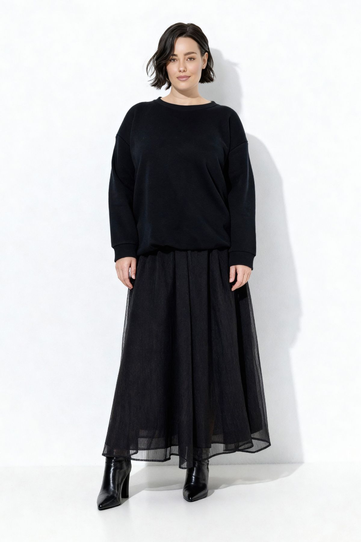 Rock, A-Linie. Luftige Oberlage mit Volants und schwingender Saumweite. Bequemer Elastikbund. Darunter blickdicht gefüttert.