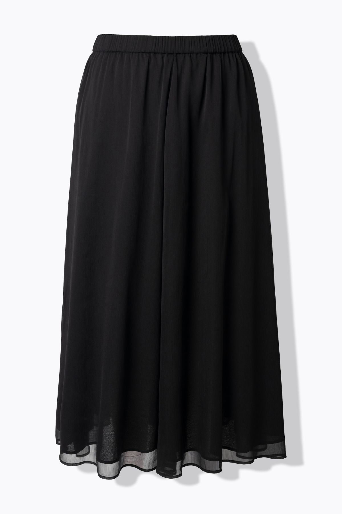 Voile léger avec volants, Taille élastique confortable, Coupe évasée, base ample et virevoltante, Doublure opaque, Long. env. 90 cm.