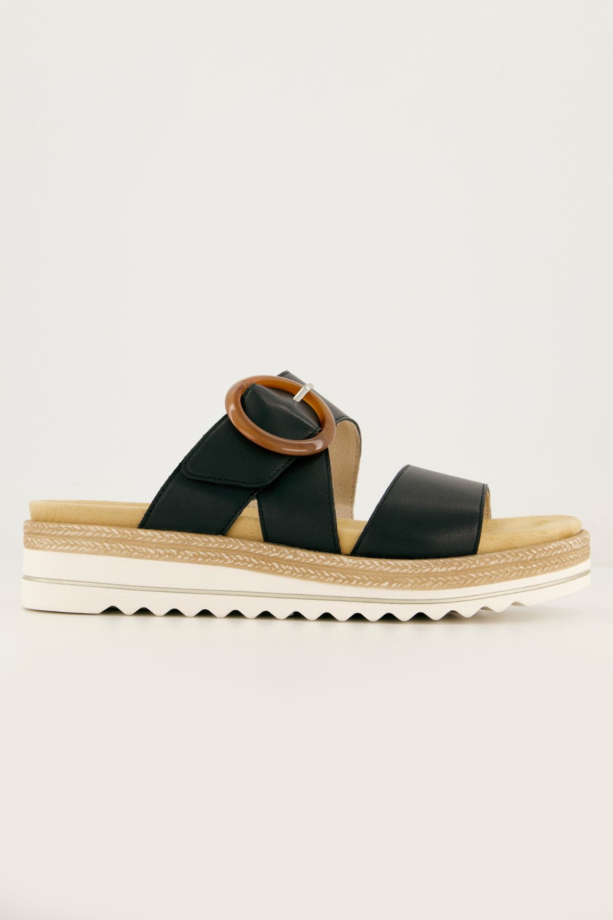 Cuir véritable et boucle fantaisie, Deux brides très larges (l'une à scratch), pour un maintien optimal du pied, Doublure textile confortable, semelle intérieure ergonomique et amovible, Schock-Absorber pour amortir les chocs lors de la marche, Semelle ex