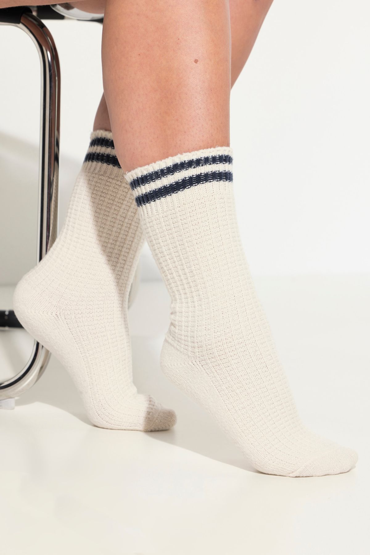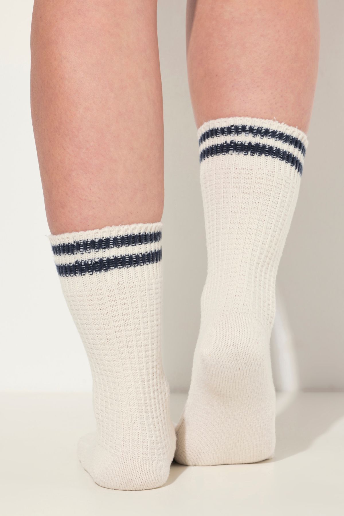 Tissu texturé à l'aspect gaufré tendance, Bords ornés de deux rayures, Semelle lisse, Bords larges n'entaillant pas la peau, Doux et confortable