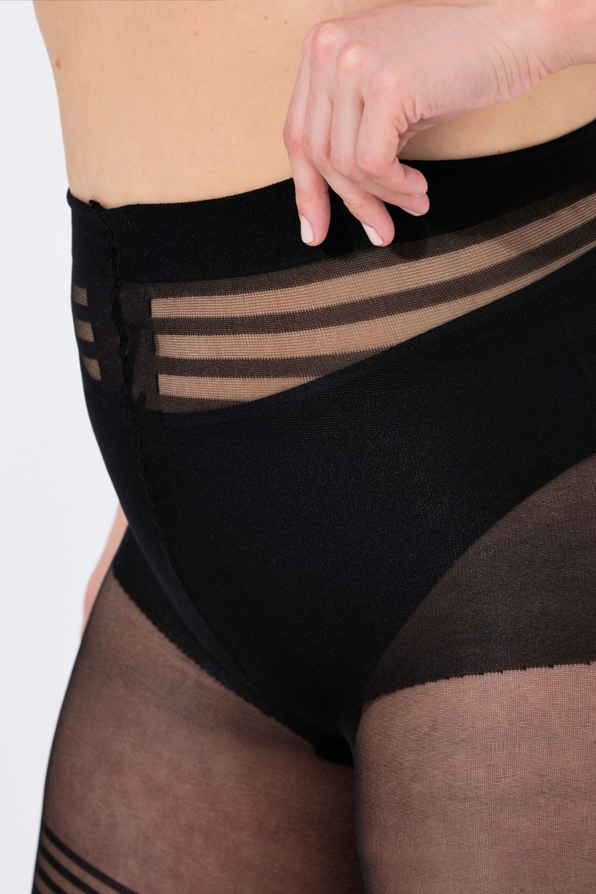 Aspect bas tendance, Rayures horizontales au milieu de la cuisse, Couleur unie au-dessus, Matière élastique confortable