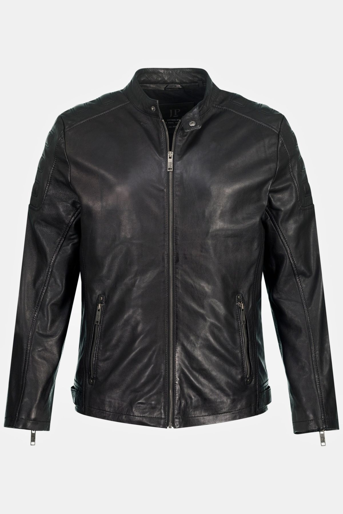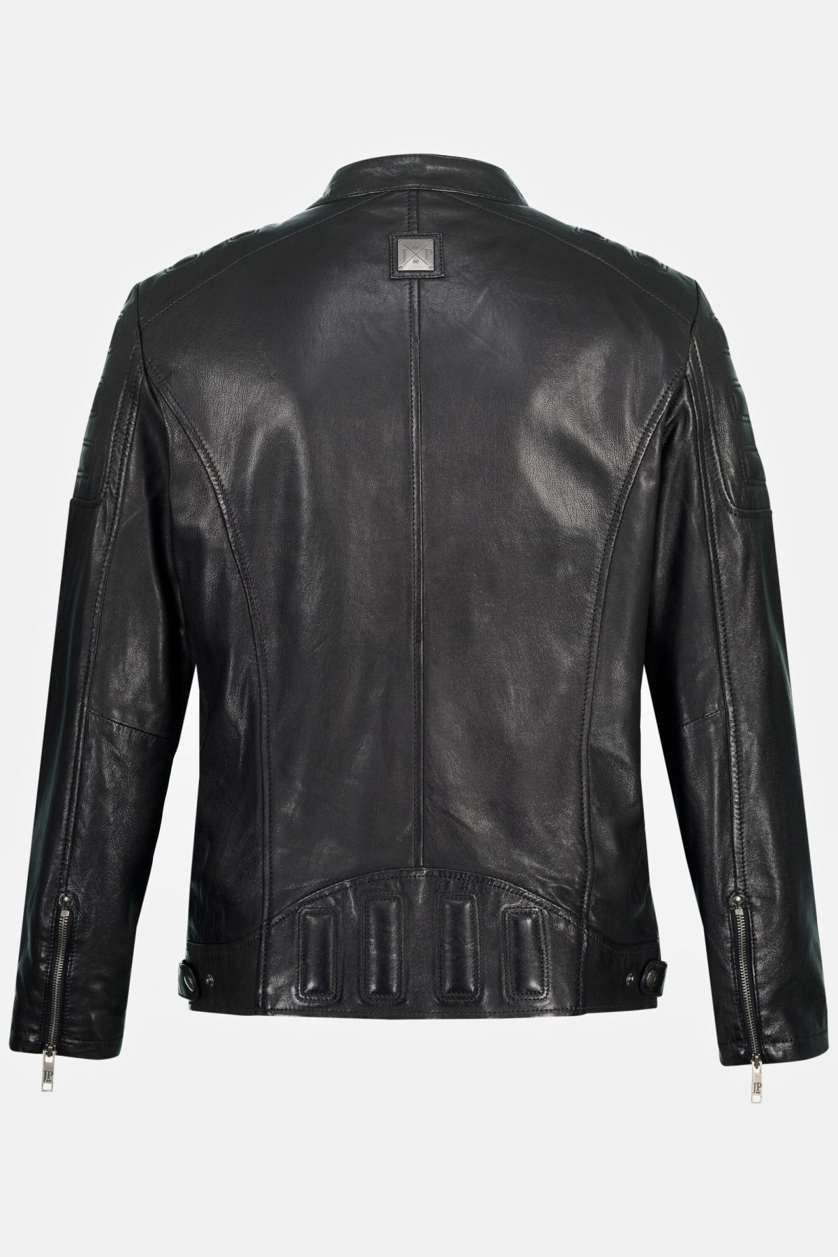 Veste de motard en cuir nappa d'agneau, Look biker authentique, Surpiqûre matelassée aux épaules, Doublure avec poches, Long. entrej. env. 70-81