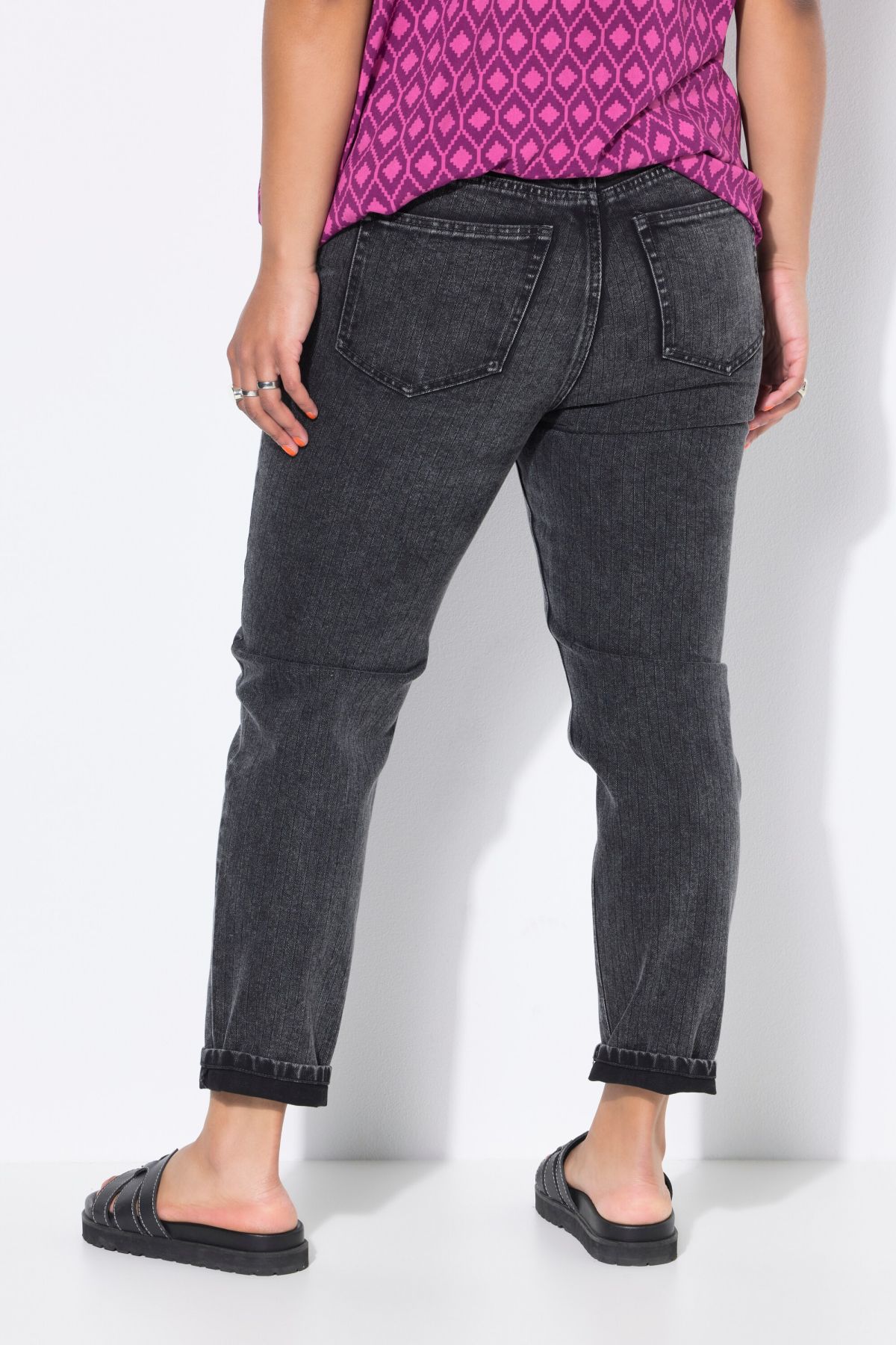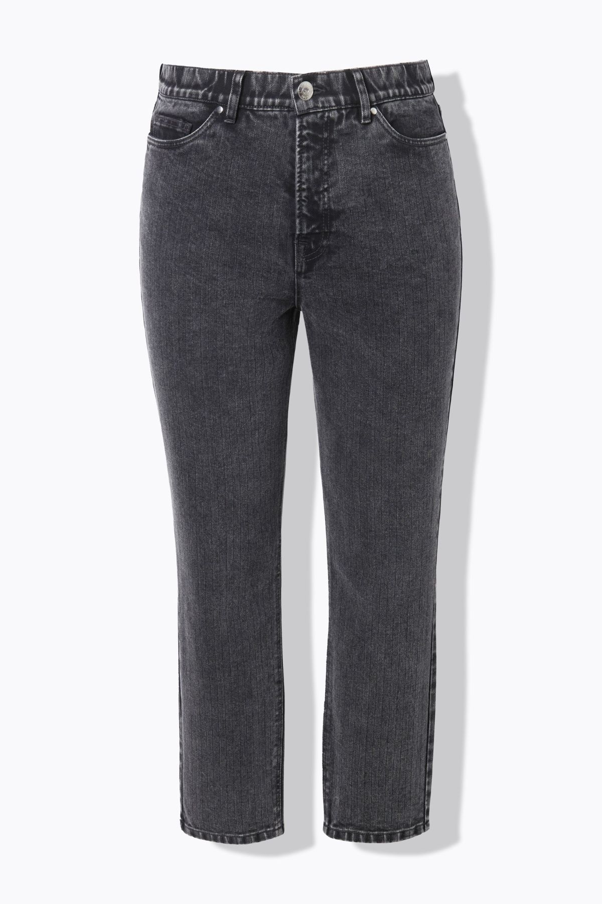 Coupe Mom, Tissu denim à fines rayures, Modèle 5 poches, Passants pour ceinture, Entrej. env. 70 cm.