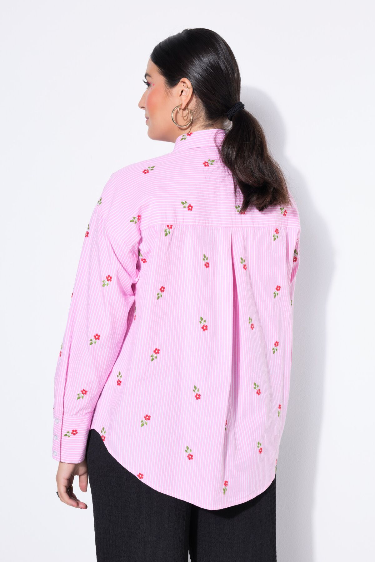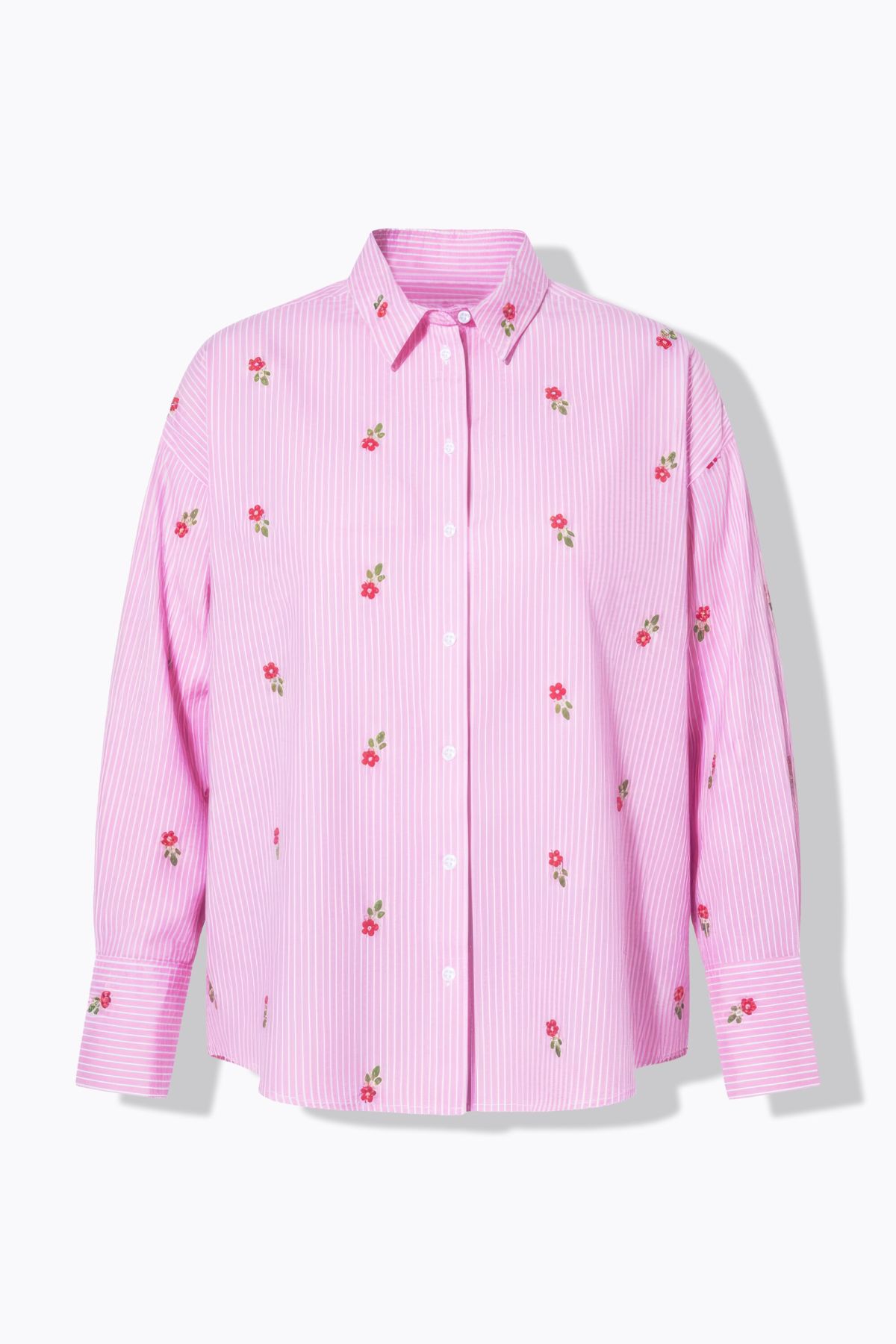 Chemise à rayures oversize, motif floral brodé