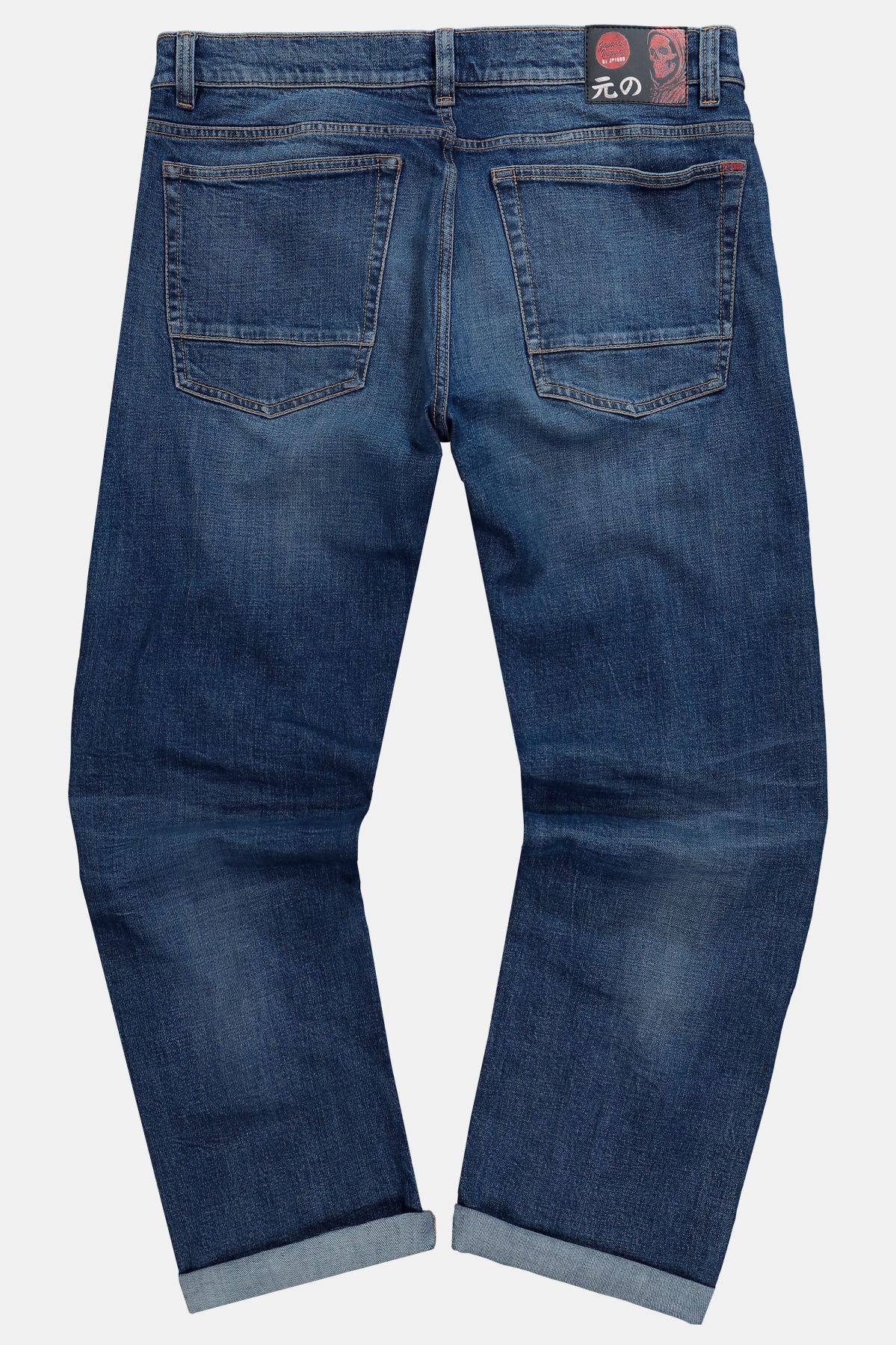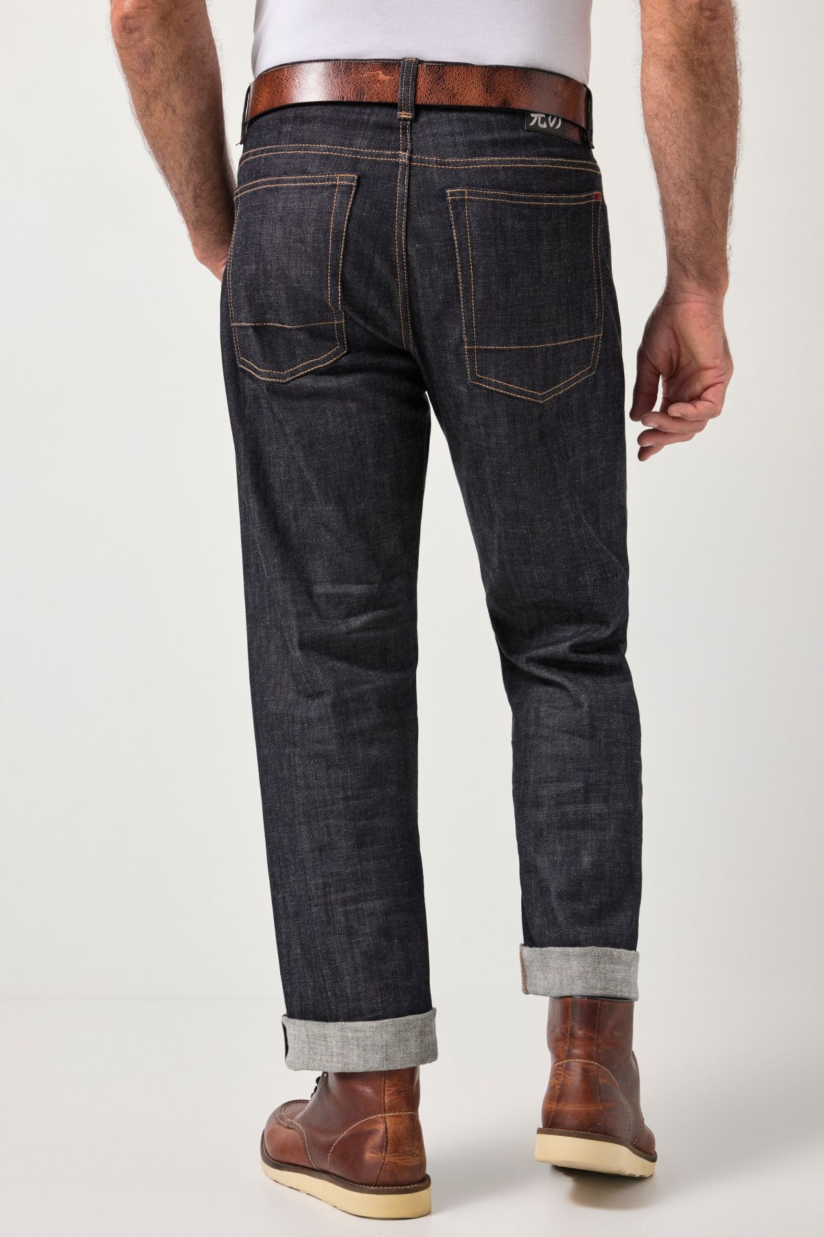 Technologie FLEXNAMIC®, coupe spéciale jusqu'au 8 XL, Article haut de gamme ! Denim selvedge fabriqué au Japon !, « Bordure finie » typique de la toile selvedge, Modèle 5 poches, Coupe Loose Fit, Entrej. env. 84-90 cm.