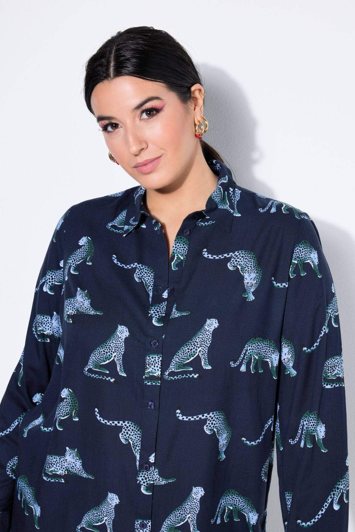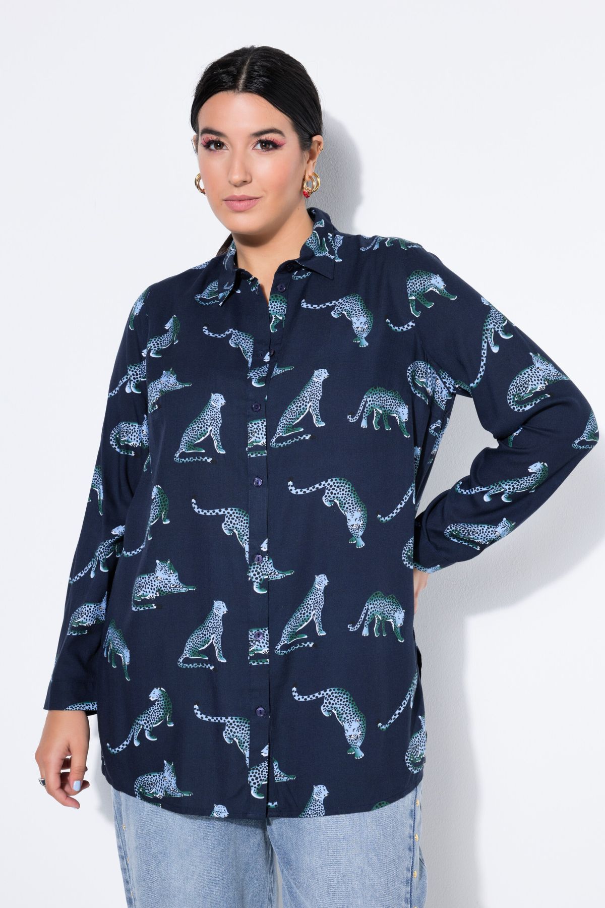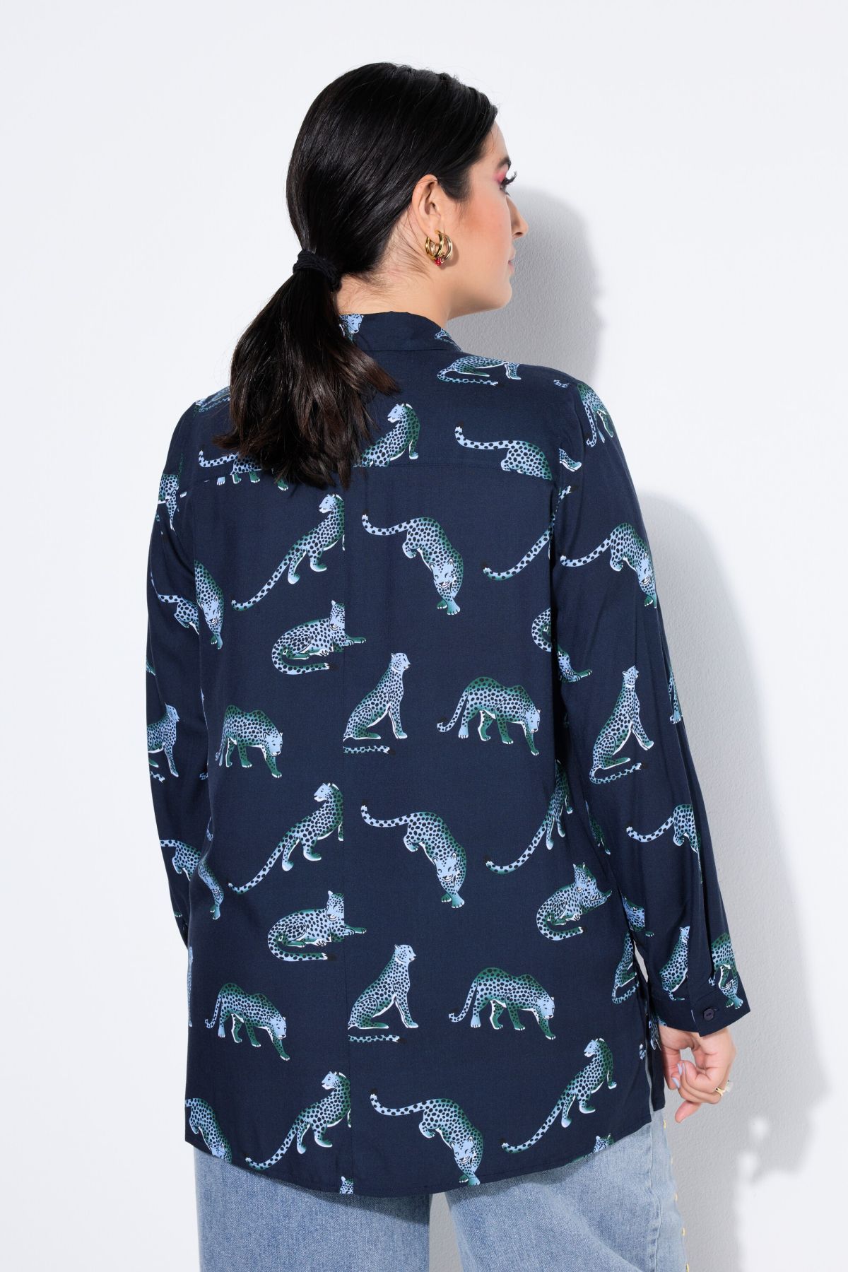 Chemisier droit à manches longues et motif léopards