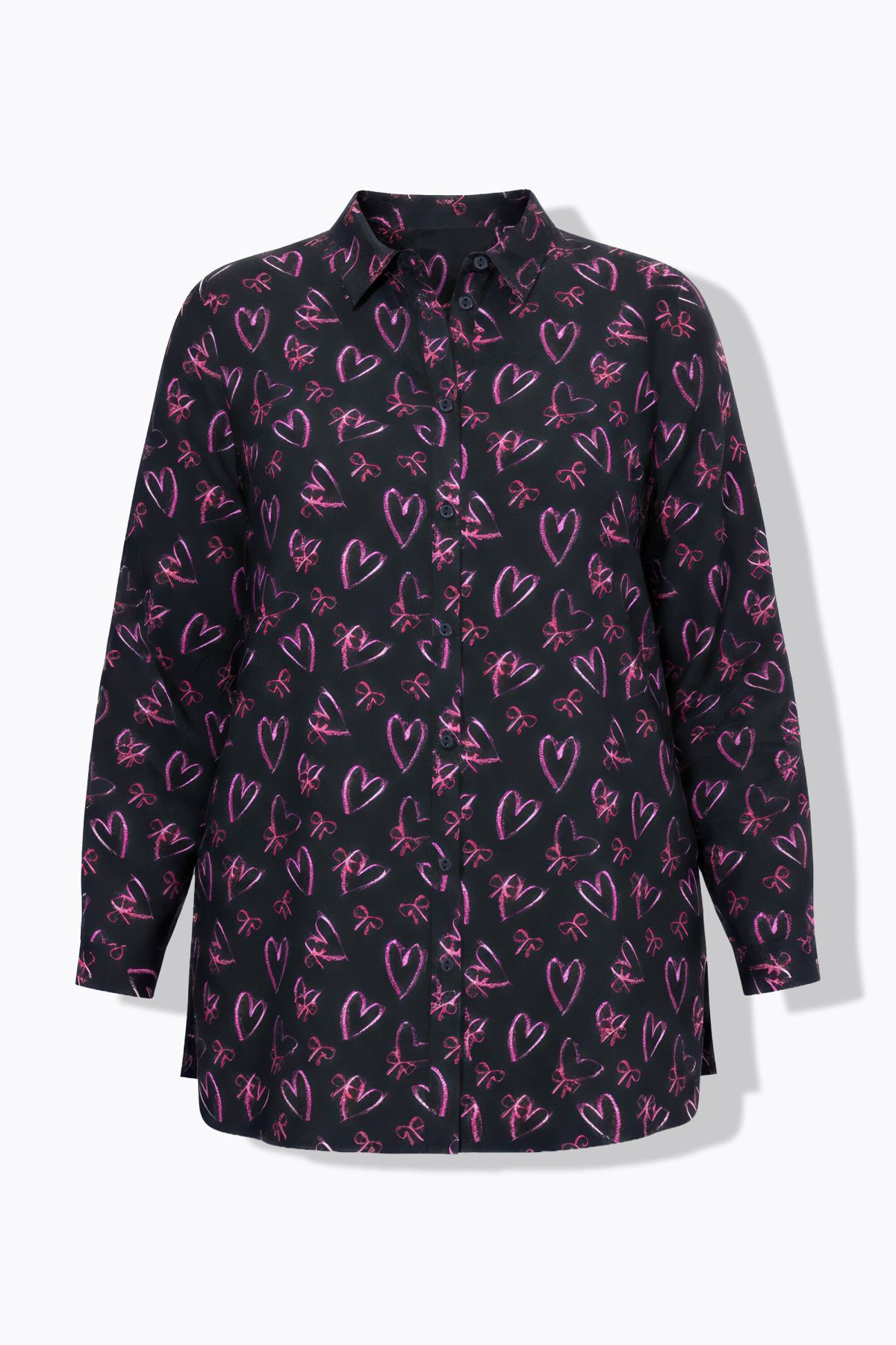 Coupe droite confortable, Viscose douce et confortable, Imprimé nœuds et cœurs, Manches longues avec poignetq, Fentes sur les côtés, Long. selon taille env. 80-84 cm.