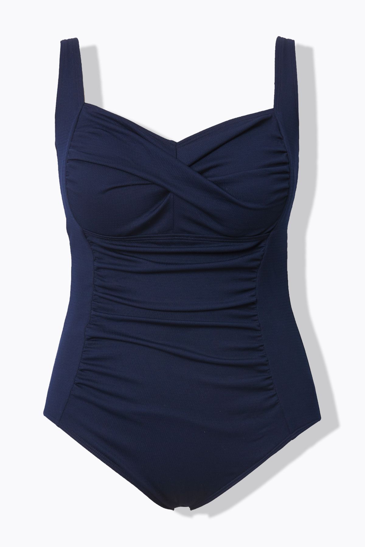 Maillot de bain à bonnets souples. Joli drapé sur la poitrine. Matière finement texturée