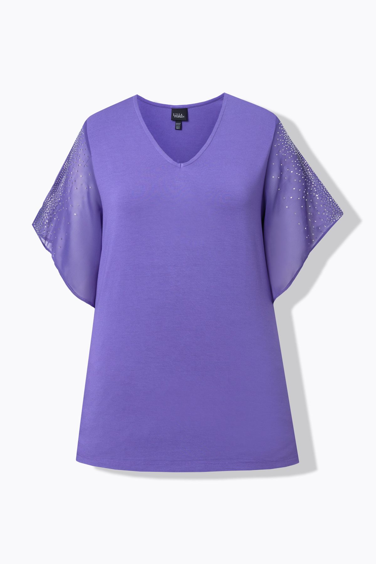 Manches 3/4 transparentes, agrémentées de petits strass brillants et festifs, Manches fendues, Encolure V, Coupe trapèze flatteuse, Top opaque