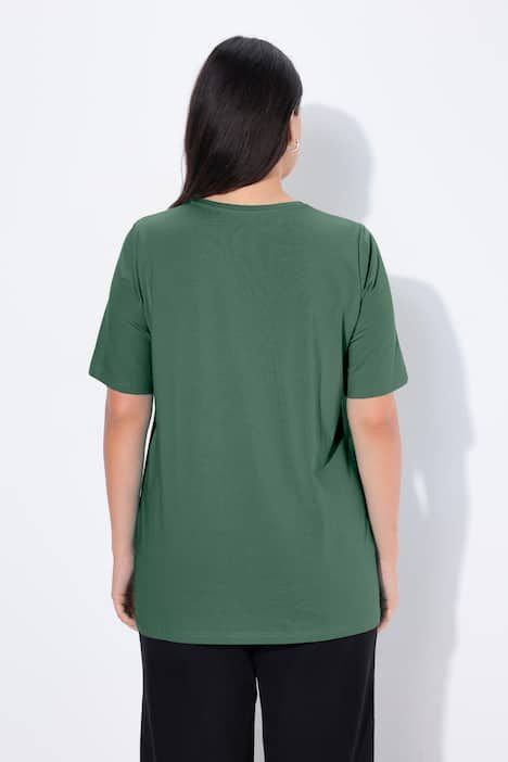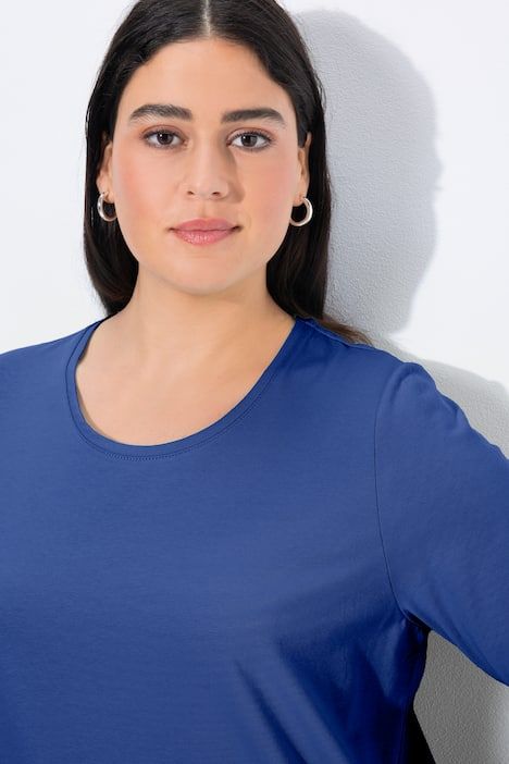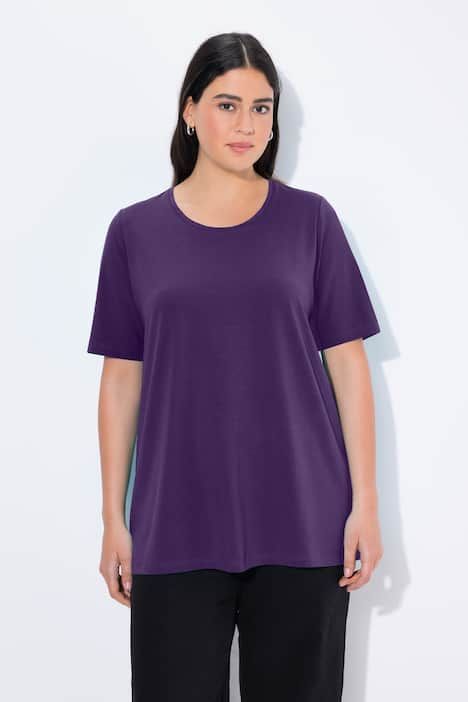 Col rond, Coupe évasée confortable, Manches courtes, Jersey de coton doux, Tissu élastique et indéformable grâce à sa teneur en élasthanne, Long. entrej. env. 72-76