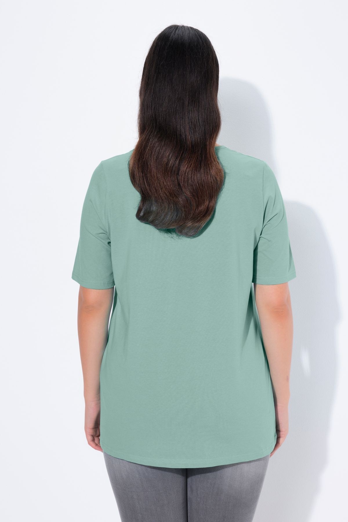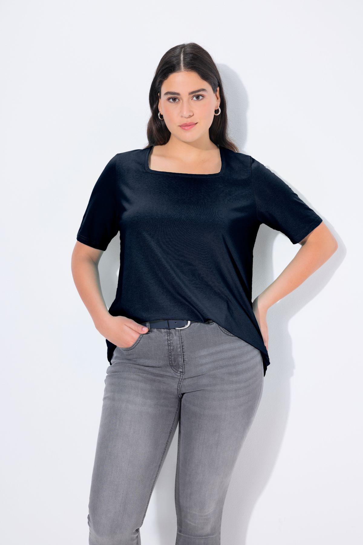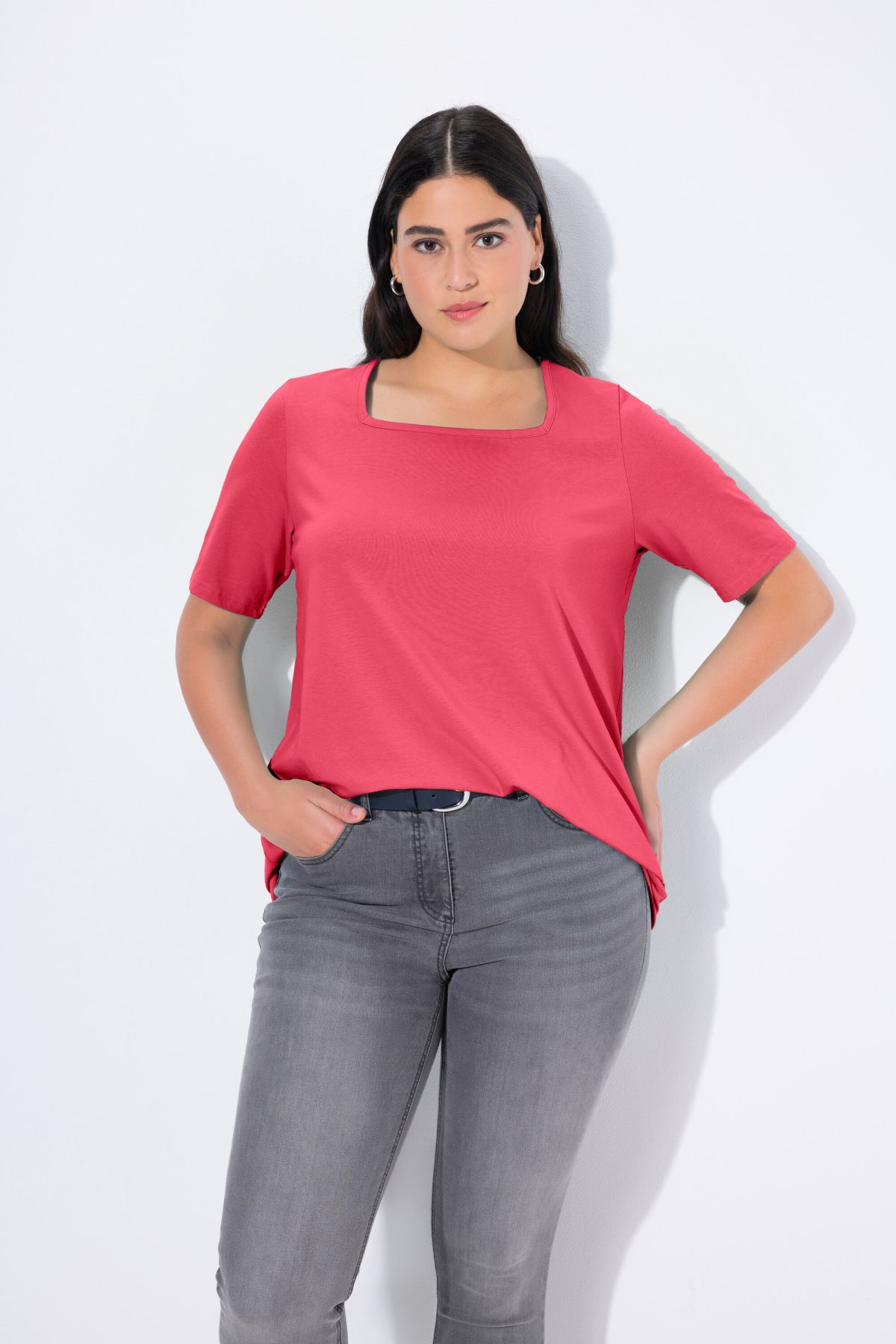 Le T-shirt Basic, ligne A, encolure carrée et manches courtes.& 10;<br>Le cœur « C’EST BIEN – CONTINUONS » indique que le vêtement est réalisé en partie ou entièrement de façon durable ou particulièrement testé aux substances nocives.& 10;<br>