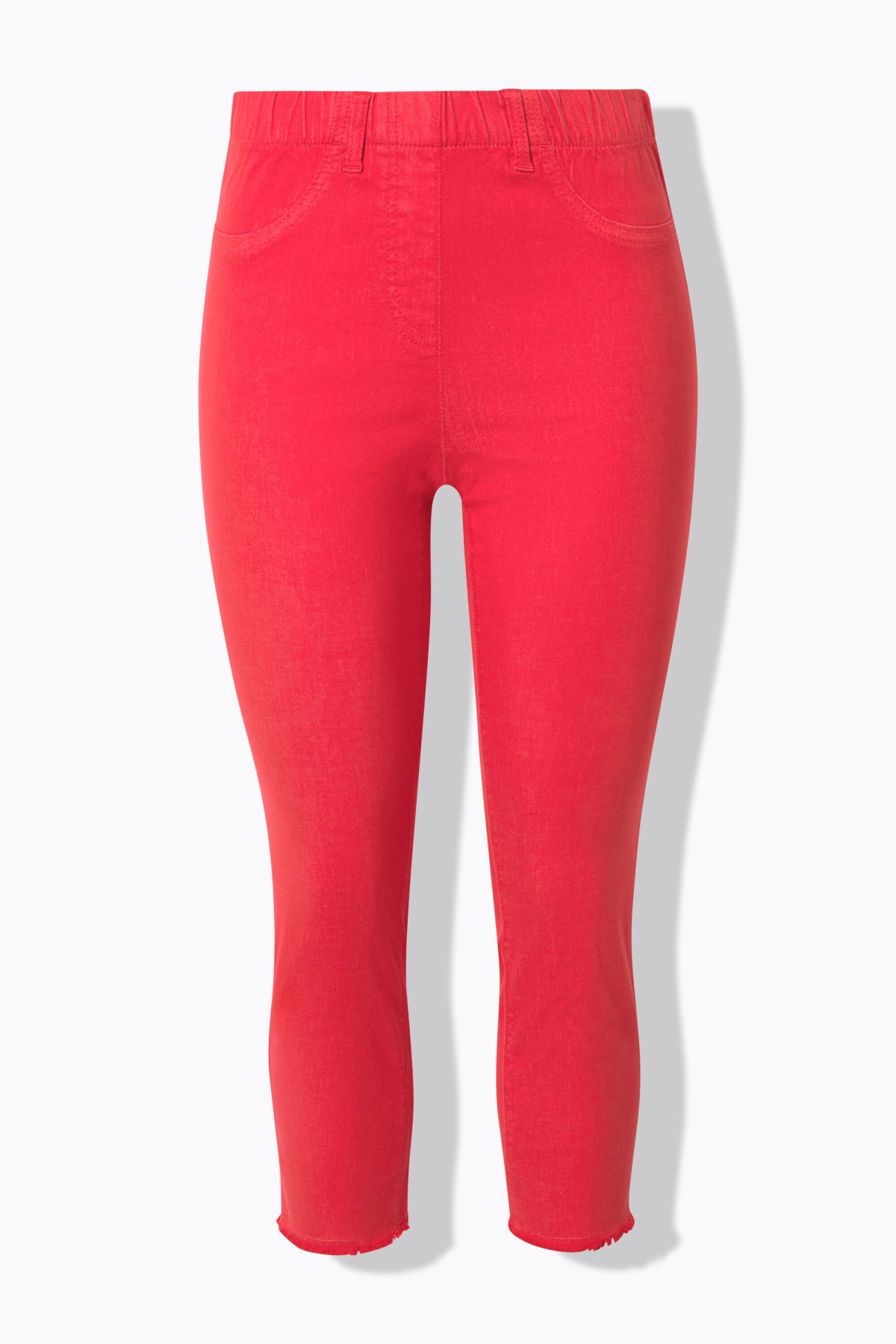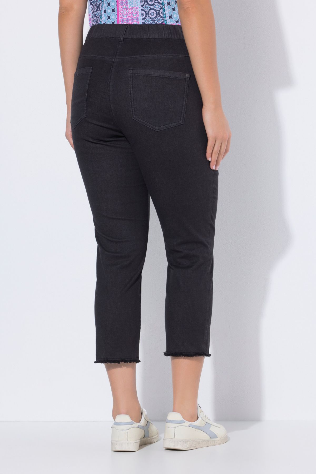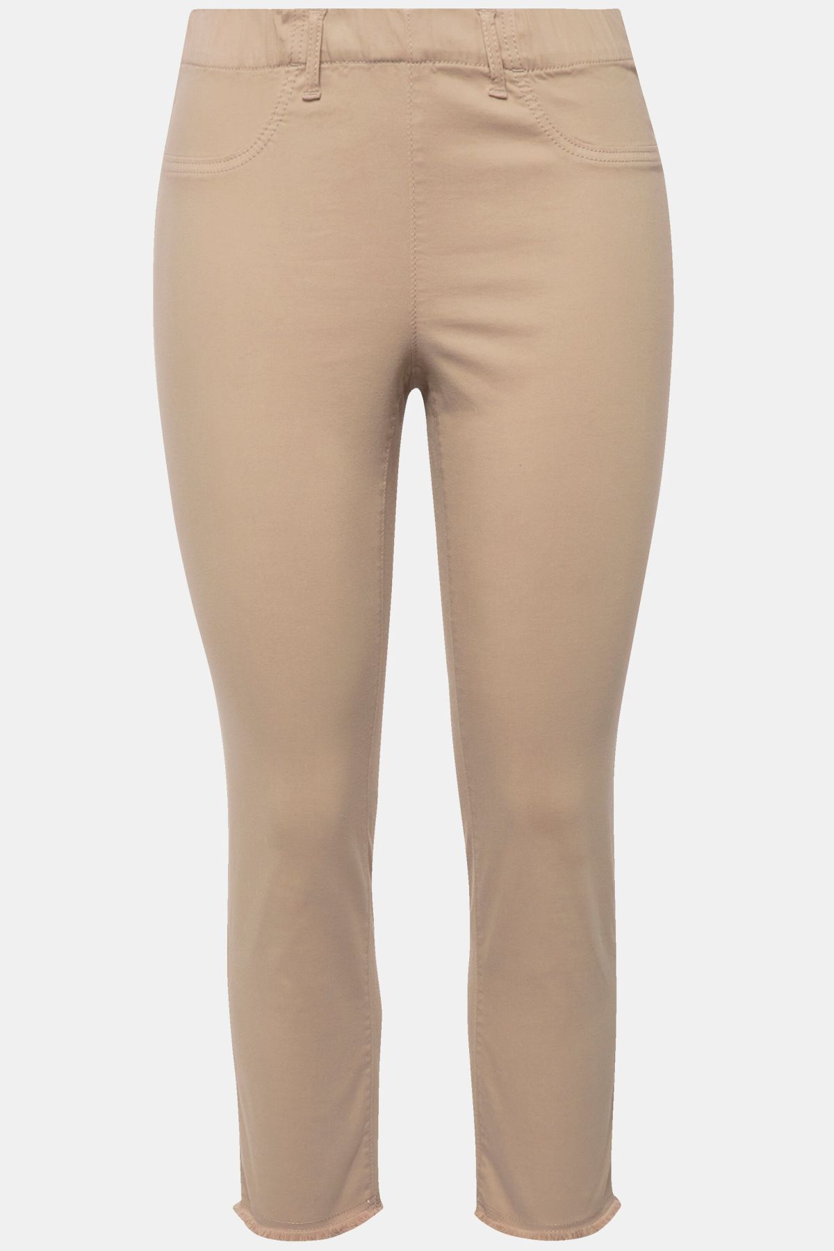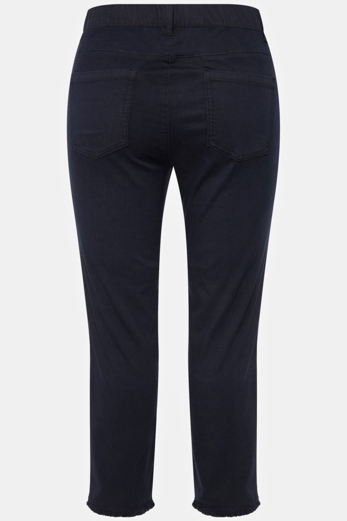 Ourlet frangé tendance, Modèle Sienna à jambe ajustée, Longueur 7/8 légèrement raccourcie, Tissu infroissable et hautement élastique, Taille élastique confortable, Entrej. env. 65 cm.