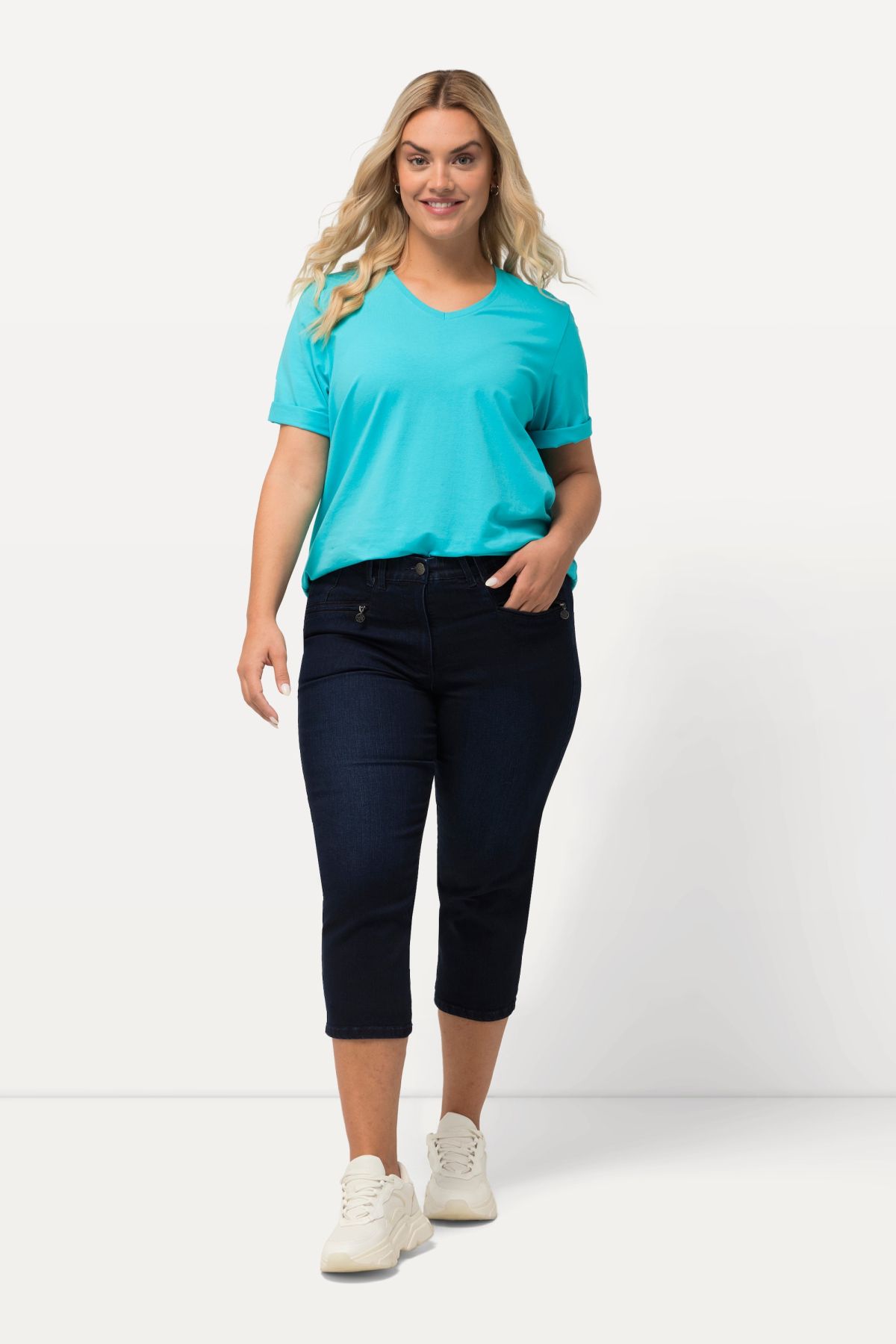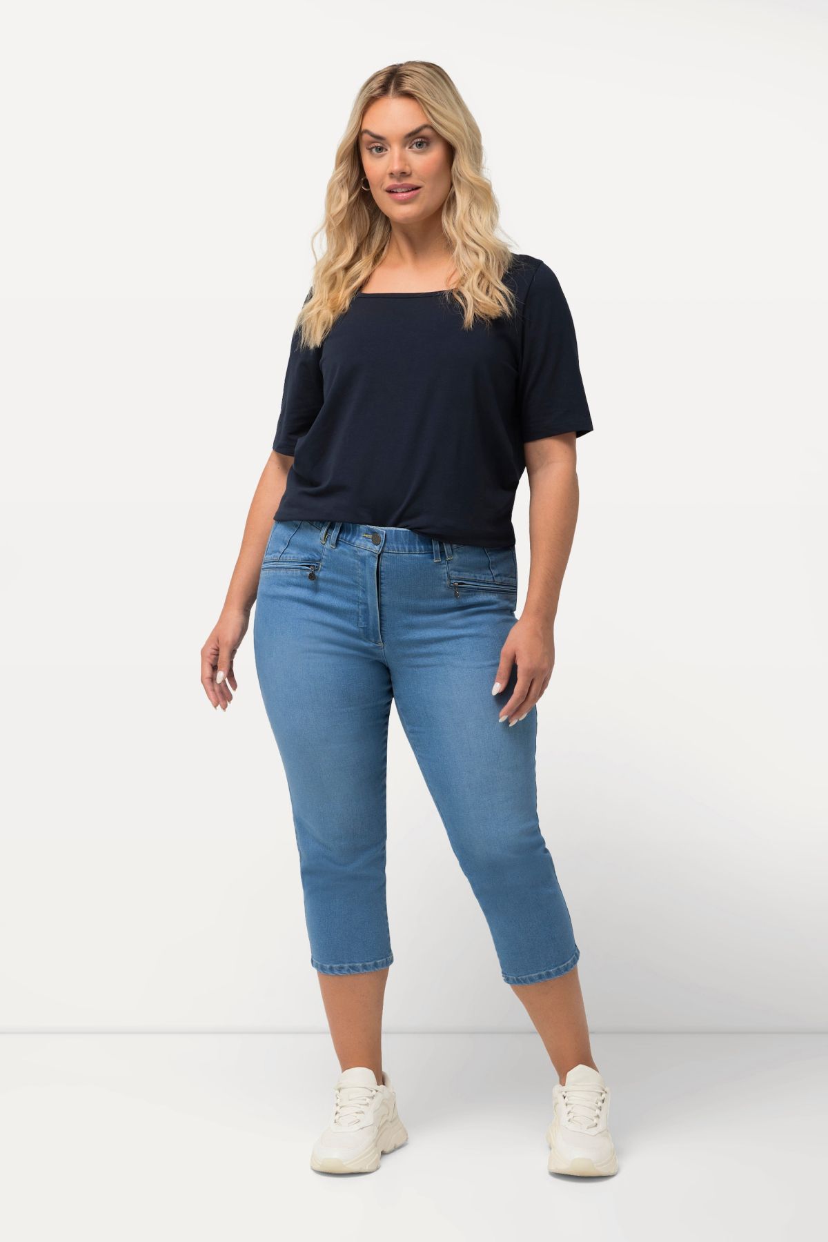 Longueur 7/8 légèrement raccourcie, Coupe Mony populaire et éprouvée, Taille confortable avec bouton et fermeture éclair, Passants pour ceinture, Matière stretch confortable, Long. env. 58 cm.