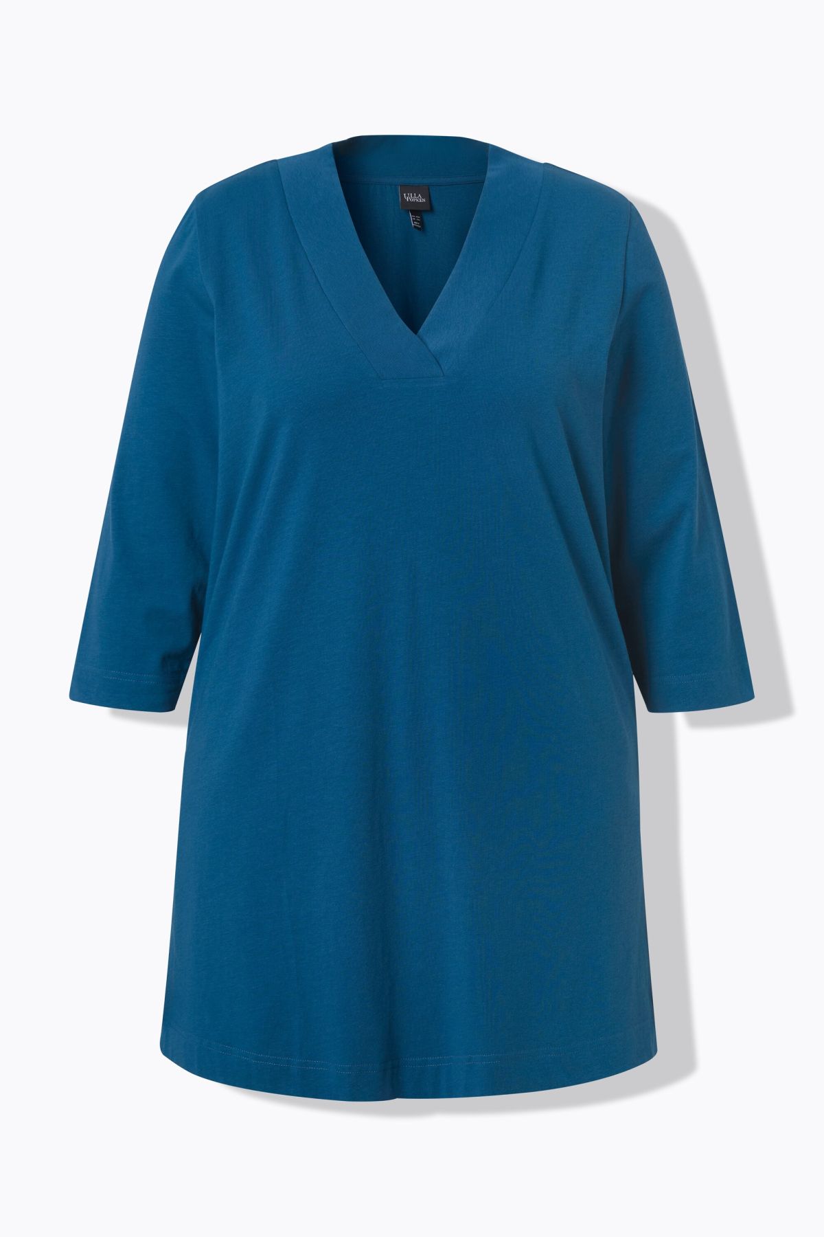 Décolleté en V à finitions de grande qualité, Coupe évasée longue, Fentes sur les côtés pour une plus grande liberté de mouvement, Manches 3/4, Coton naturel enrichi en élasthanne, Long. entrej. env. 84-88
