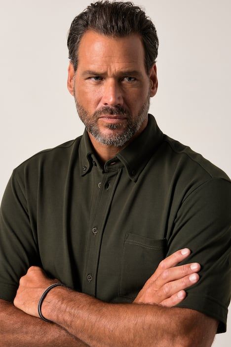 Chemise en maille piquée JP1880 coupe Modern, avec technologie FLEXNAMIC®, manches courtes et col à pointes boutonnées
