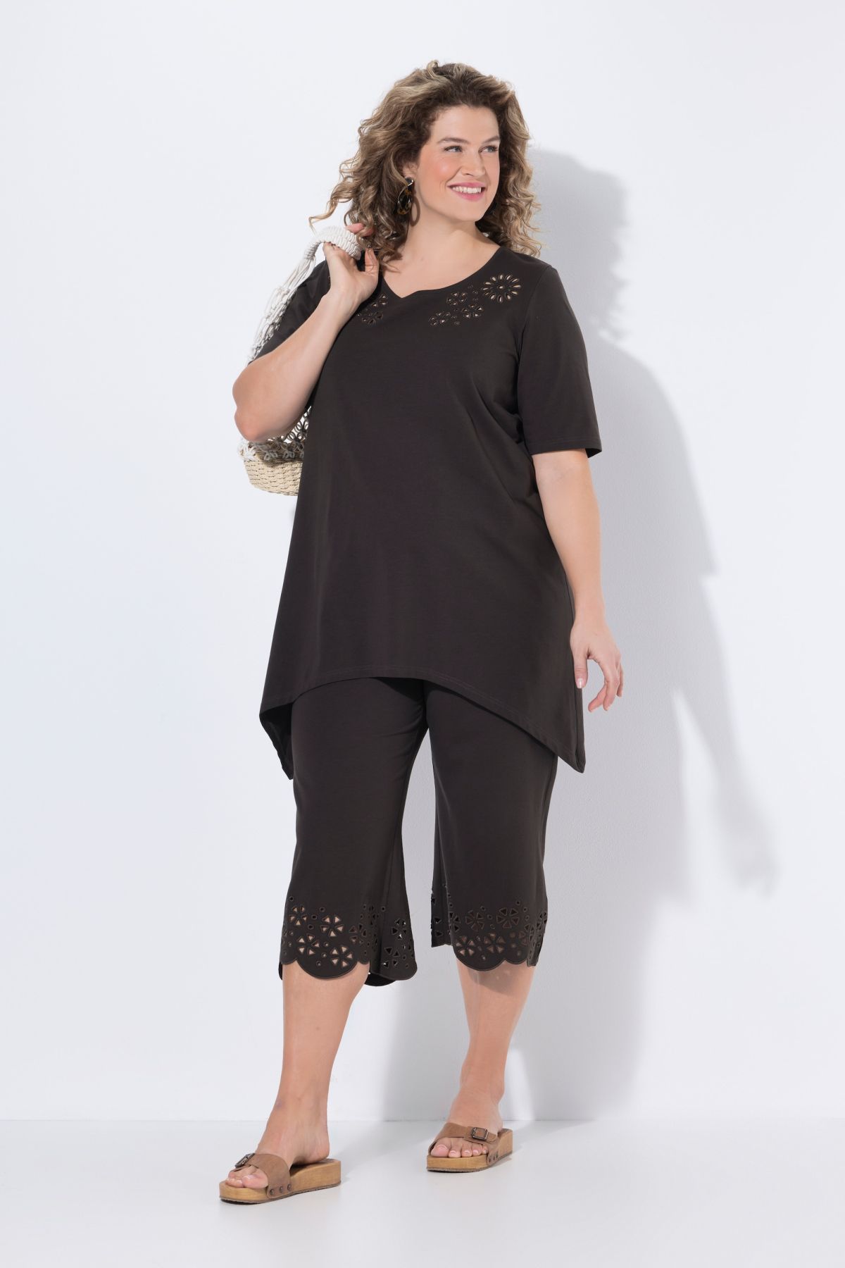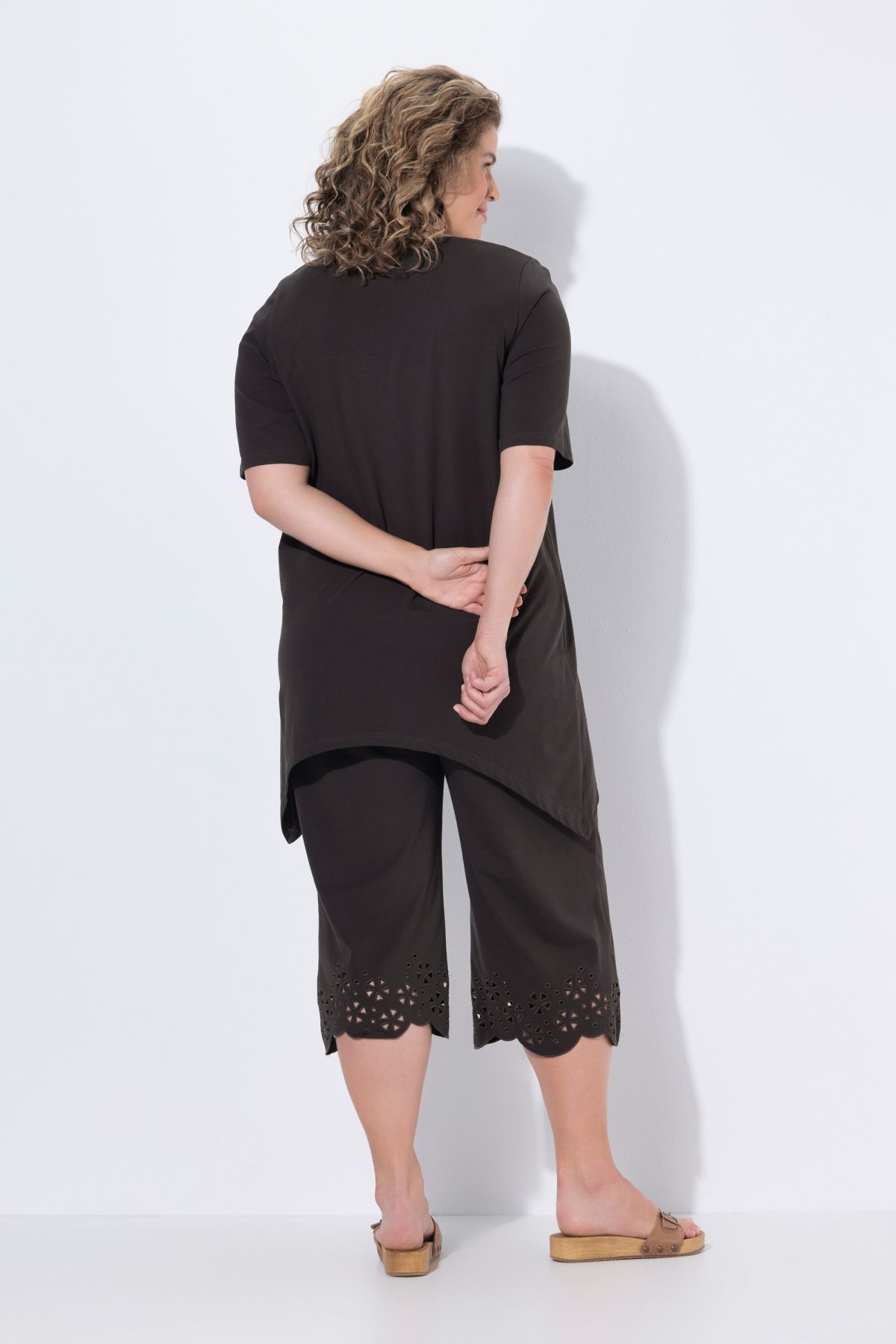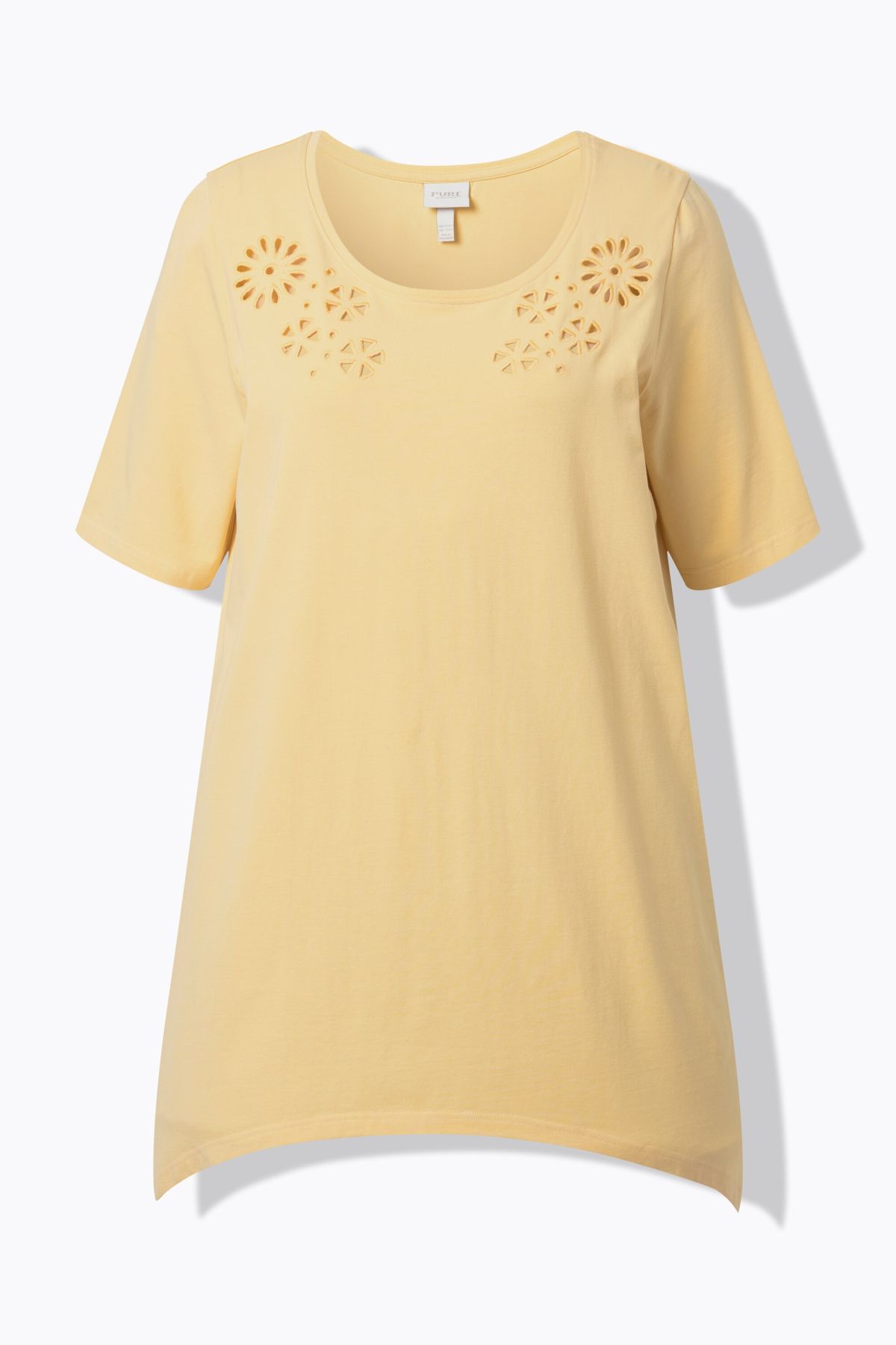 élégantes broderies ajourées, Col rond, coupe évasée et confortable, détail tendance : base se terminant en pointe sur les côtés, coton bio écologique, Long. selon taille env. 76-80 cm.