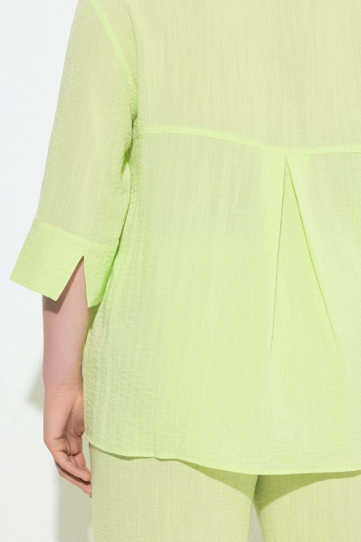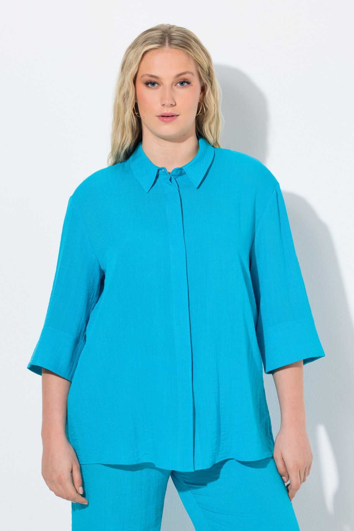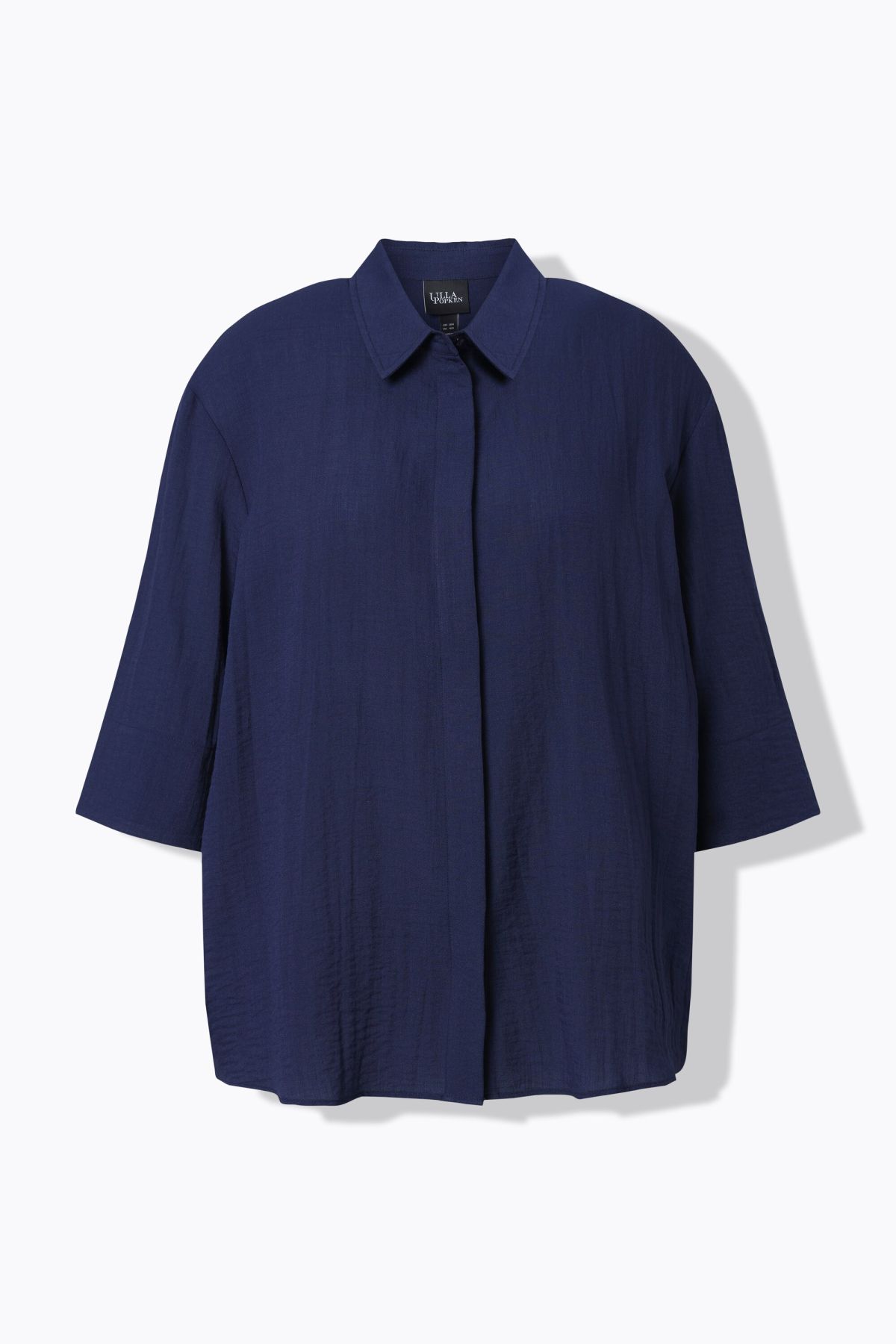 Chemisier à pli d'aisance. Manches 3/4 et col classique. Coupe évasée