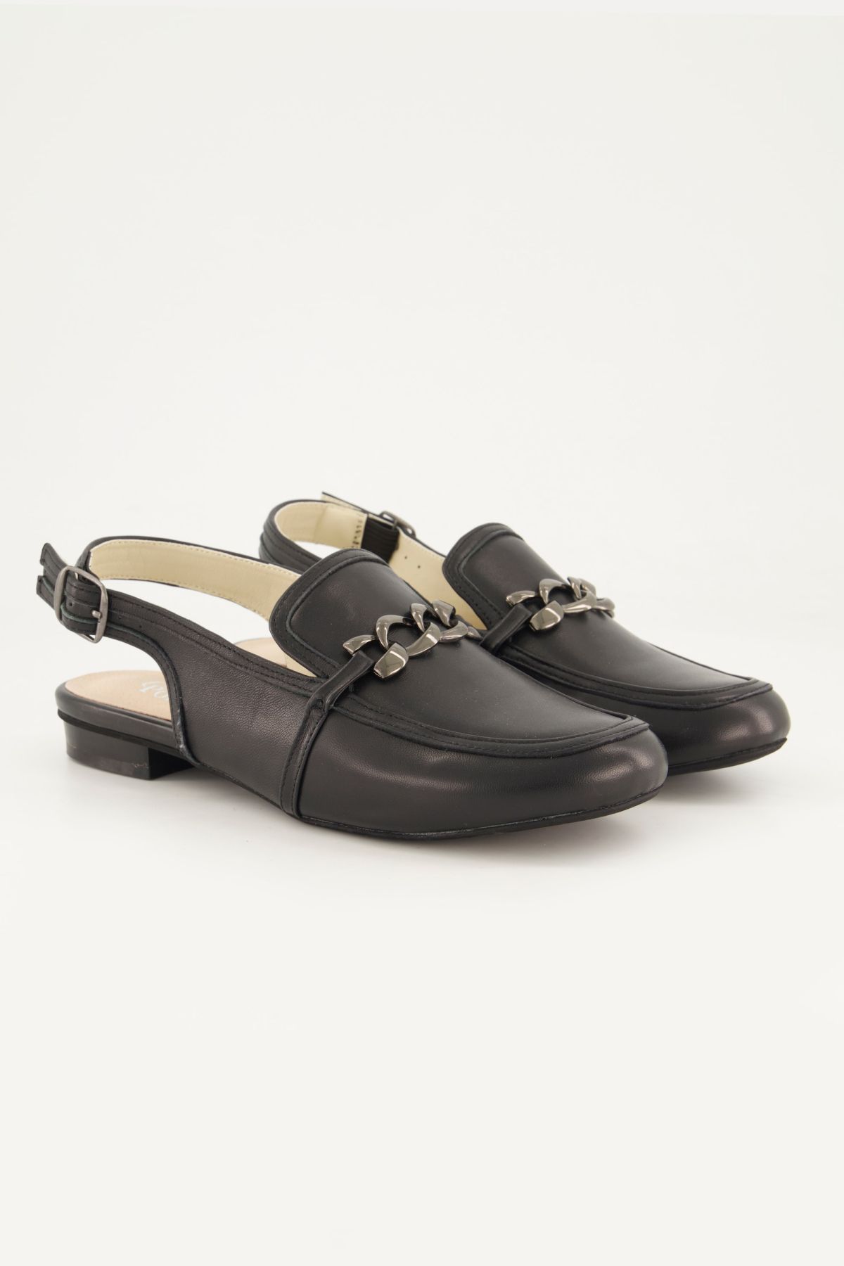 Mules en cuir. Chaînette fantaisie - largeur H