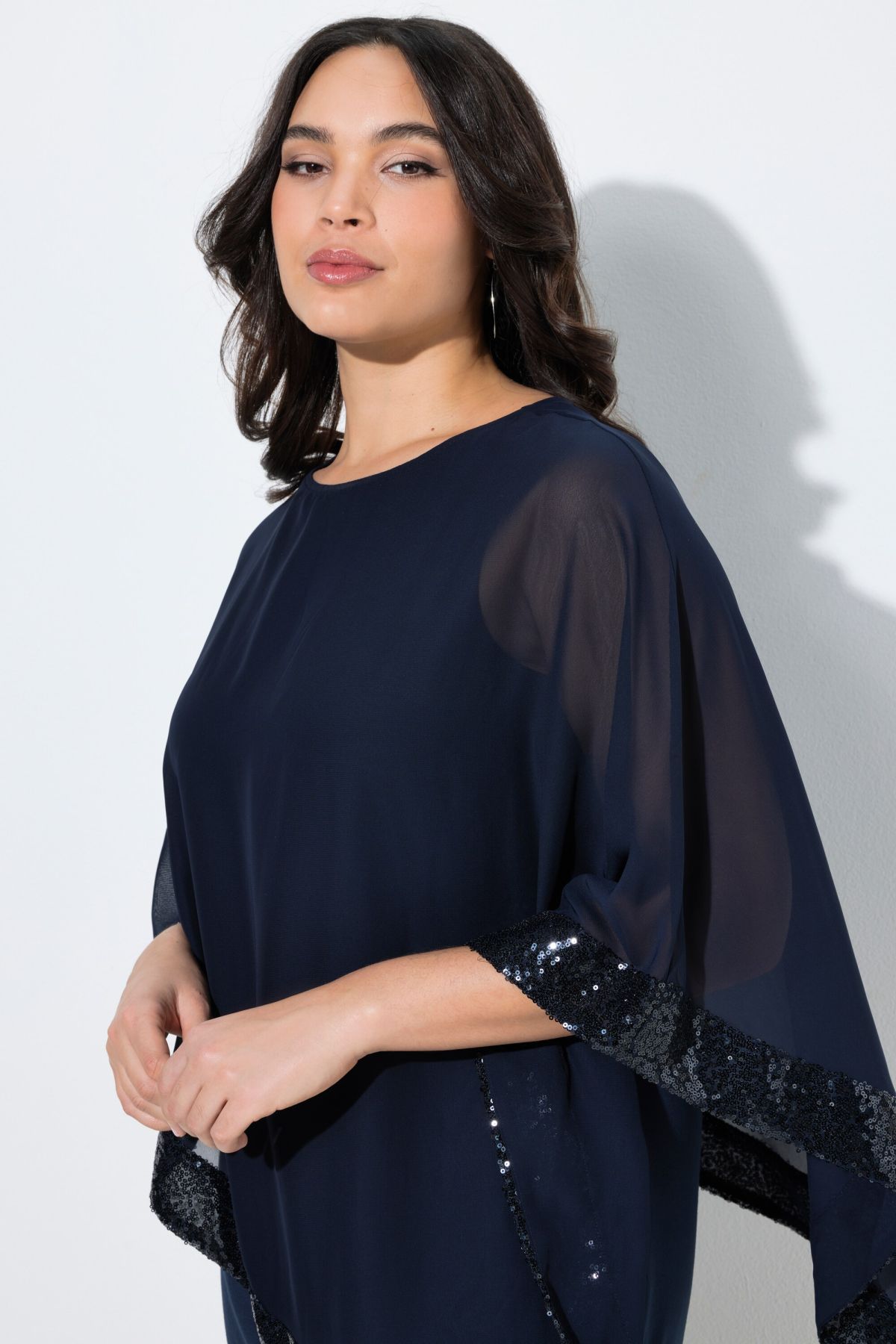 Blouse avec voile en mousseline. Encolure bateau, manches 3/4