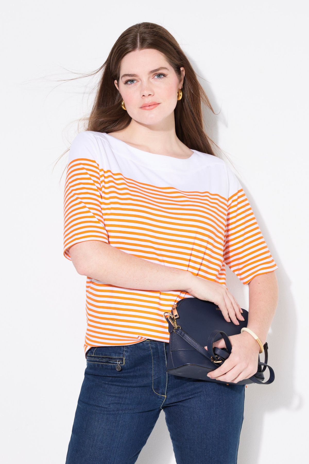 Rayures typiques, Encolure bateau, Coupe Regular, Manches courtes, Coton naturel enrichi en élasthanne, Long. selon taille env. 68-76 cm.