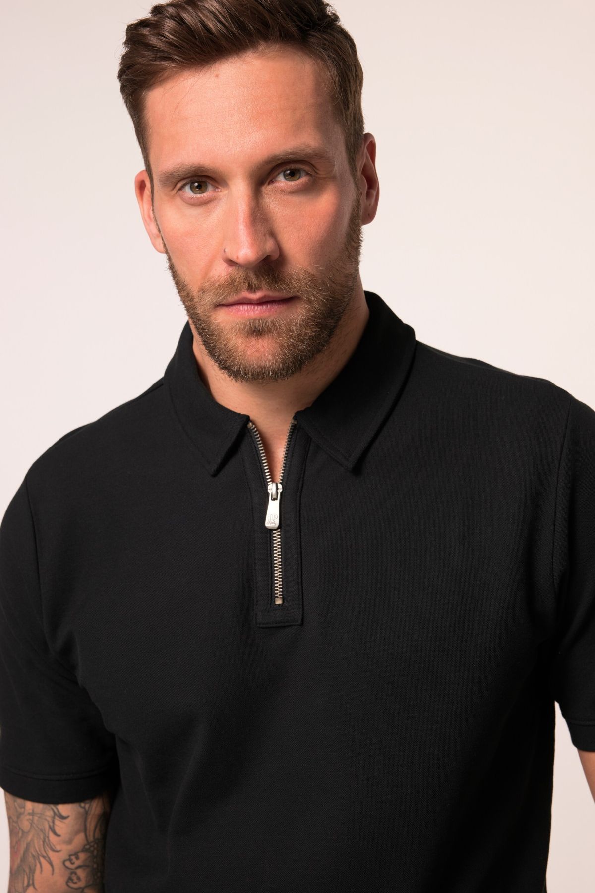 Coupe spéciale jusqu'au 8 XL, Tissu piqué de très grande qualité, Col polo avec fermeture zippée, Manches courtes, Long. entrej. env. 74-86