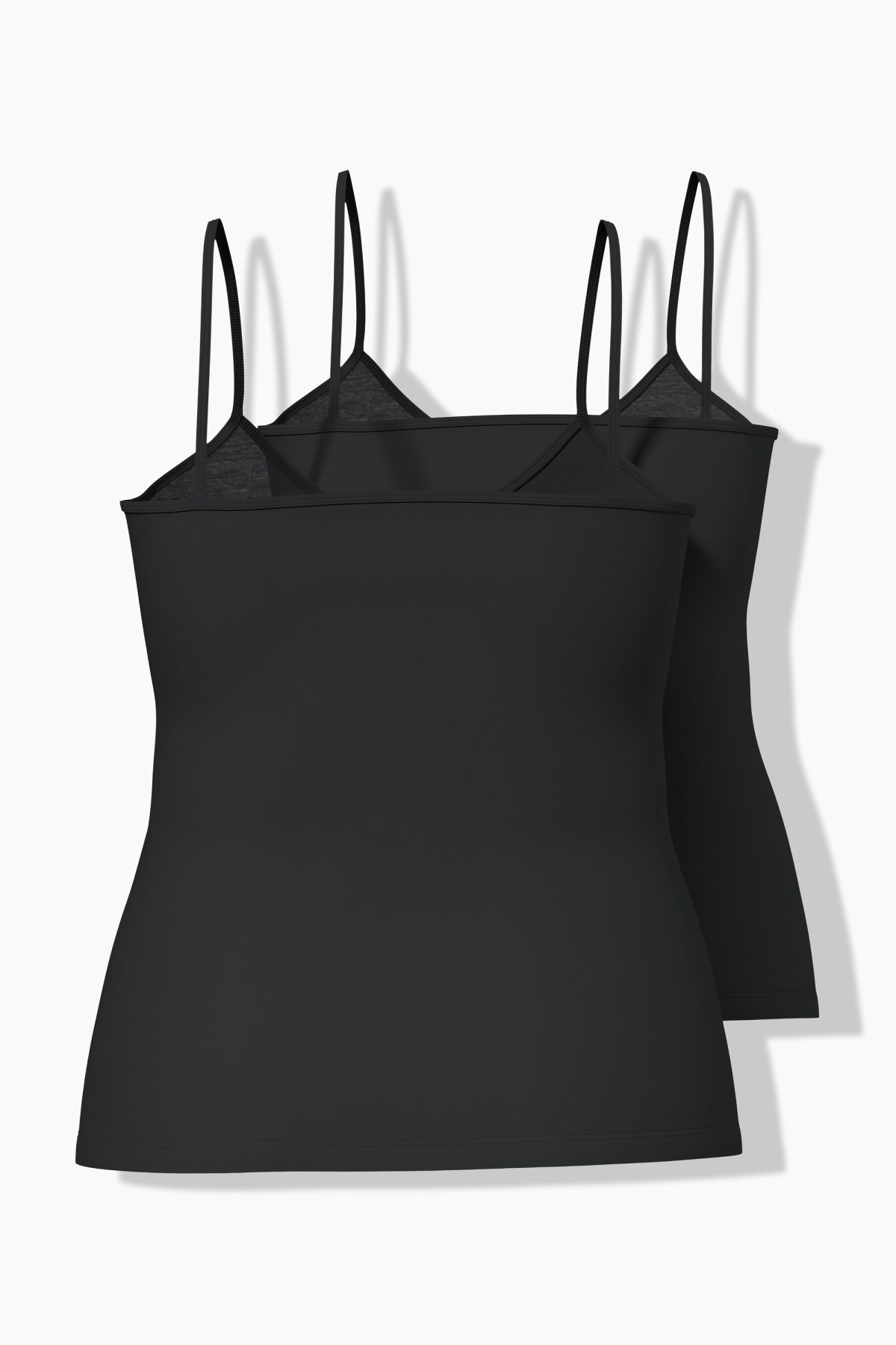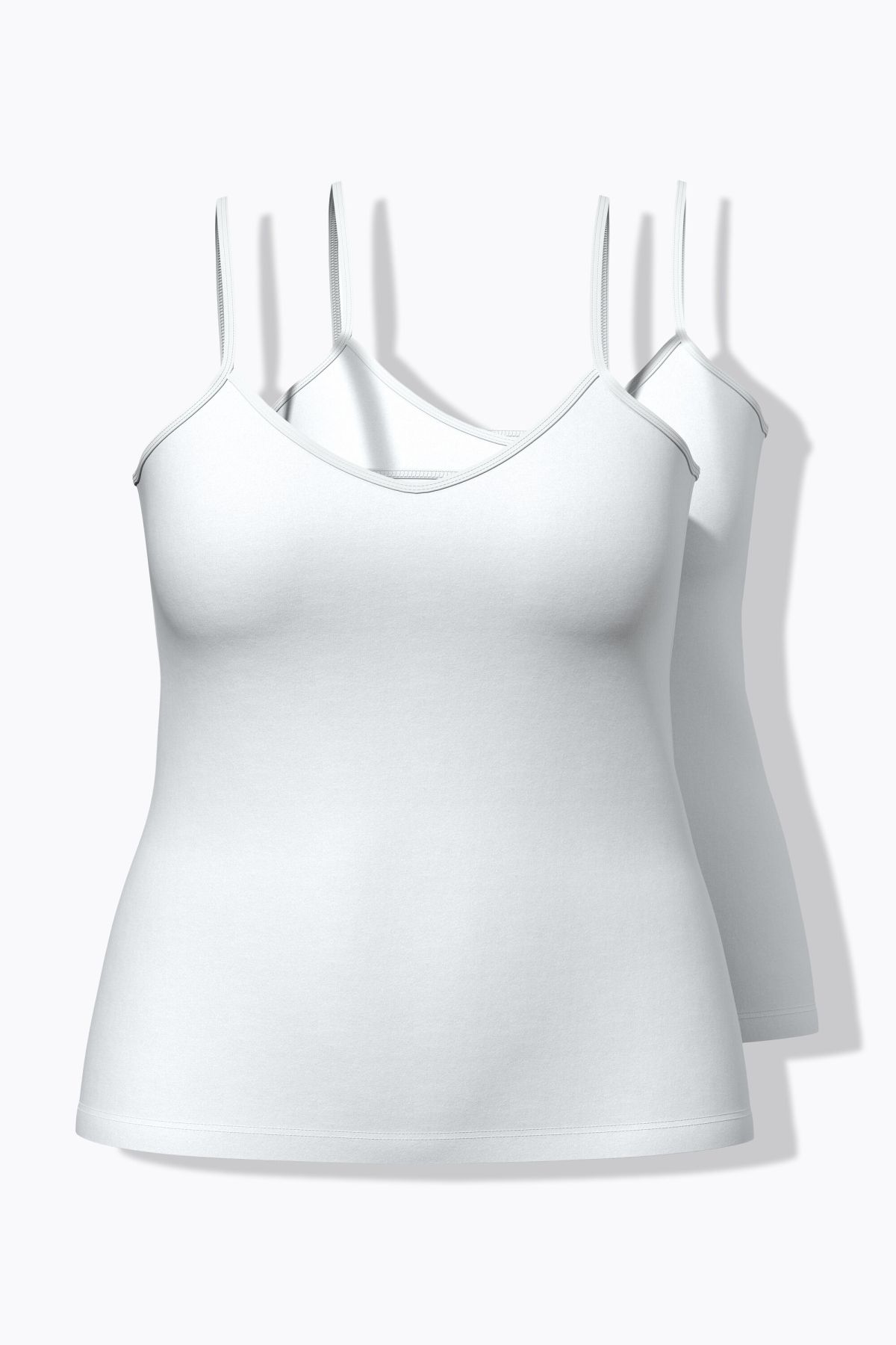 Lot de 2 à prix attractif, Col rond relativement large, Coupe près du corps - modèle idéal comme maillot de corps, Fines bretelles spaghetti, Tissu élastique et indéformable grâce à sa teneur en élasthanne, Long. selon taille env. 65-73 cm.