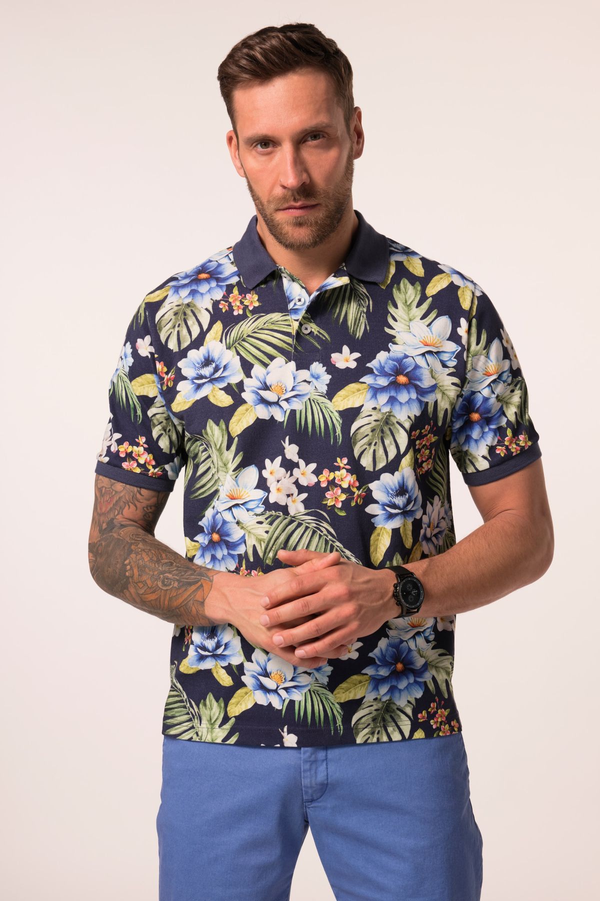 Coupe spéciale jusqu'au 8 XL ,Tissu piqué de très grande qualité ,Imprimé floral all-over (intégral) ,Manches courtes ,Long. entrej. env. 74-86