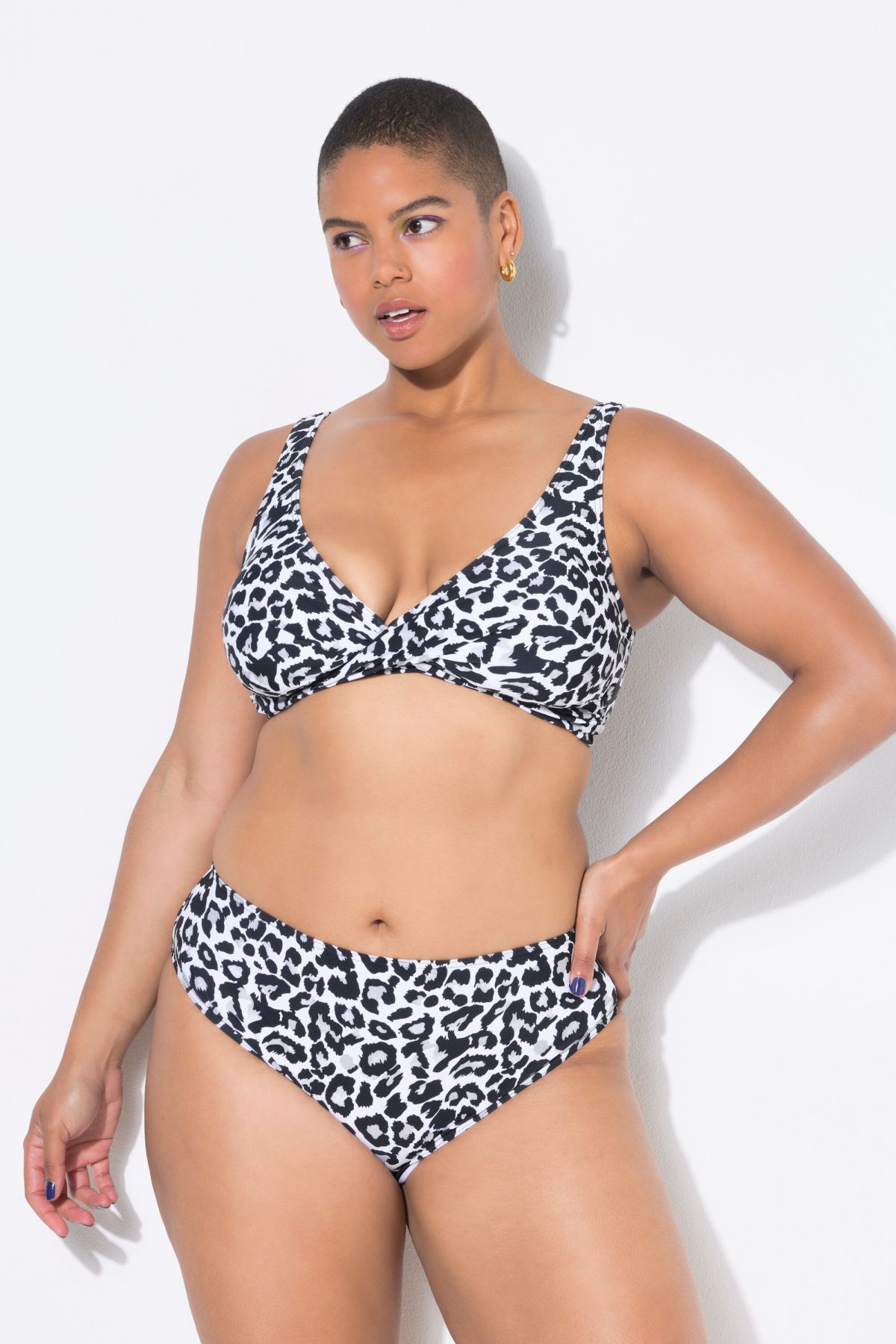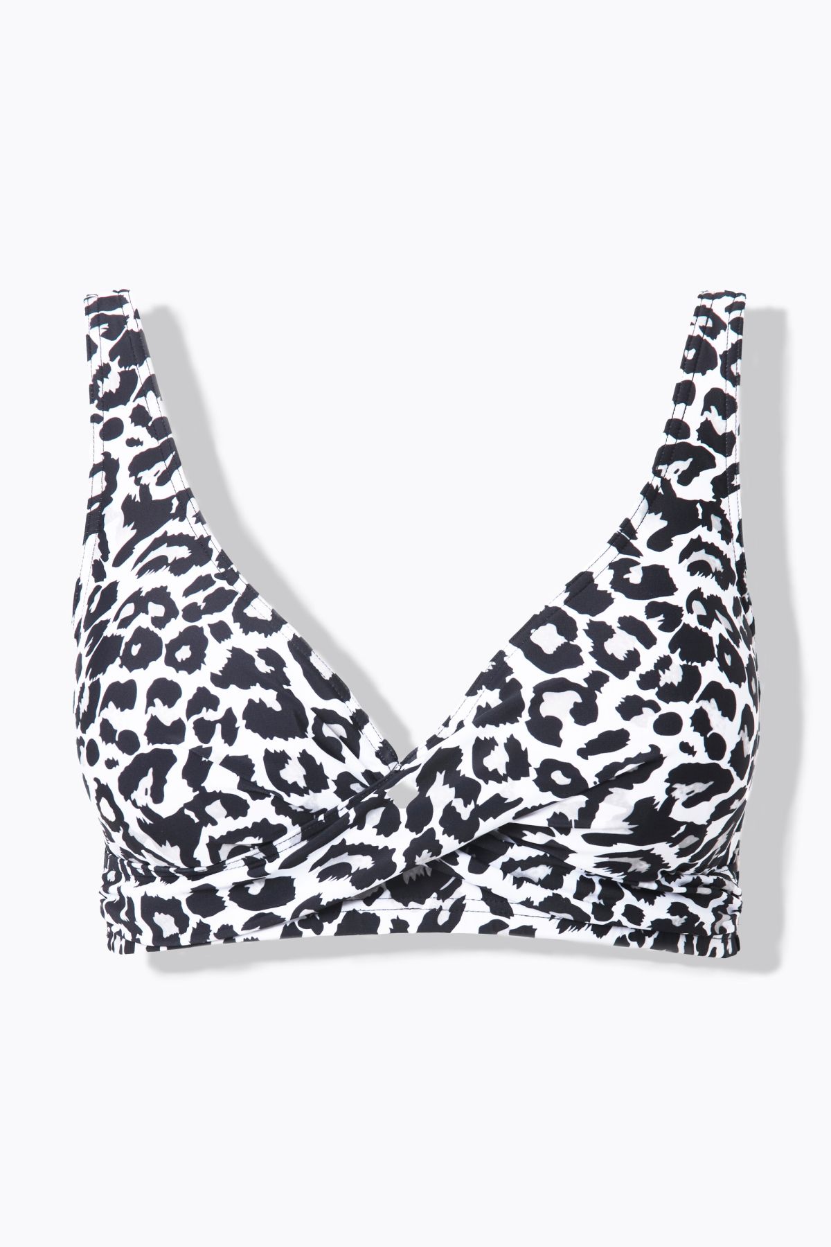 Haut de bikini drapé, bonnets souples, imprimé léopard