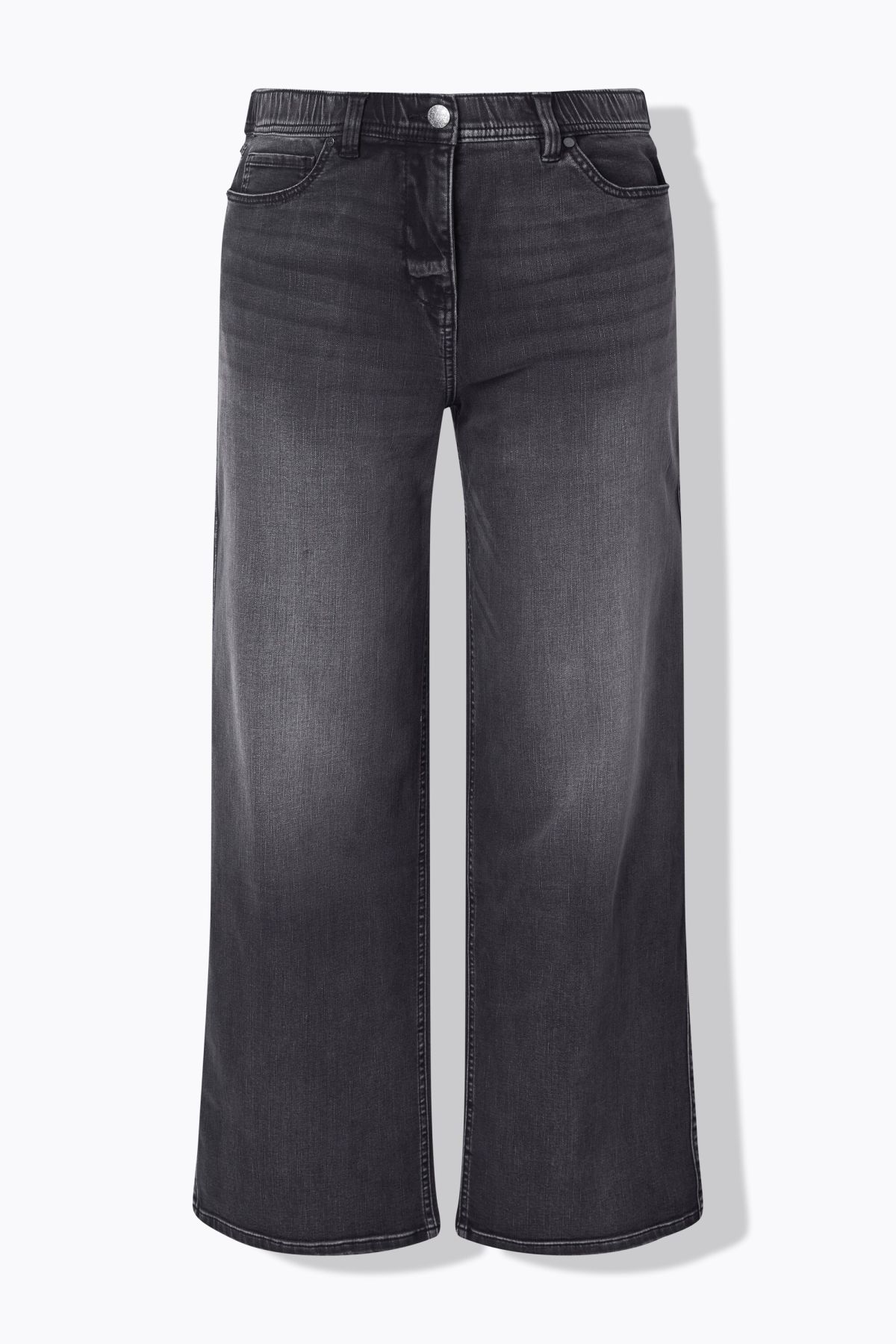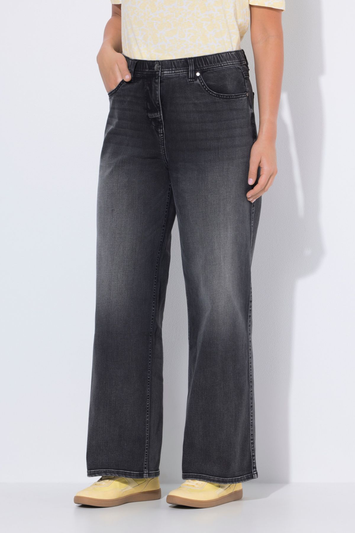 Coupe 5 poches tendance, Modèle Mary, jambe large, Passants pour ceinture, Braguette zippée et bouton, Matière extensible et confortable, Entrej. env. 82 cm.