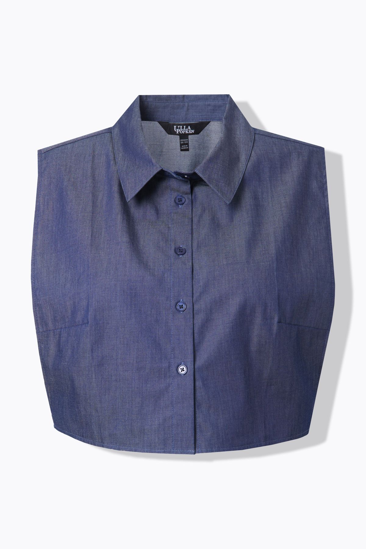 Faux col chemisier, aspect jean, avec patte de boutonnage