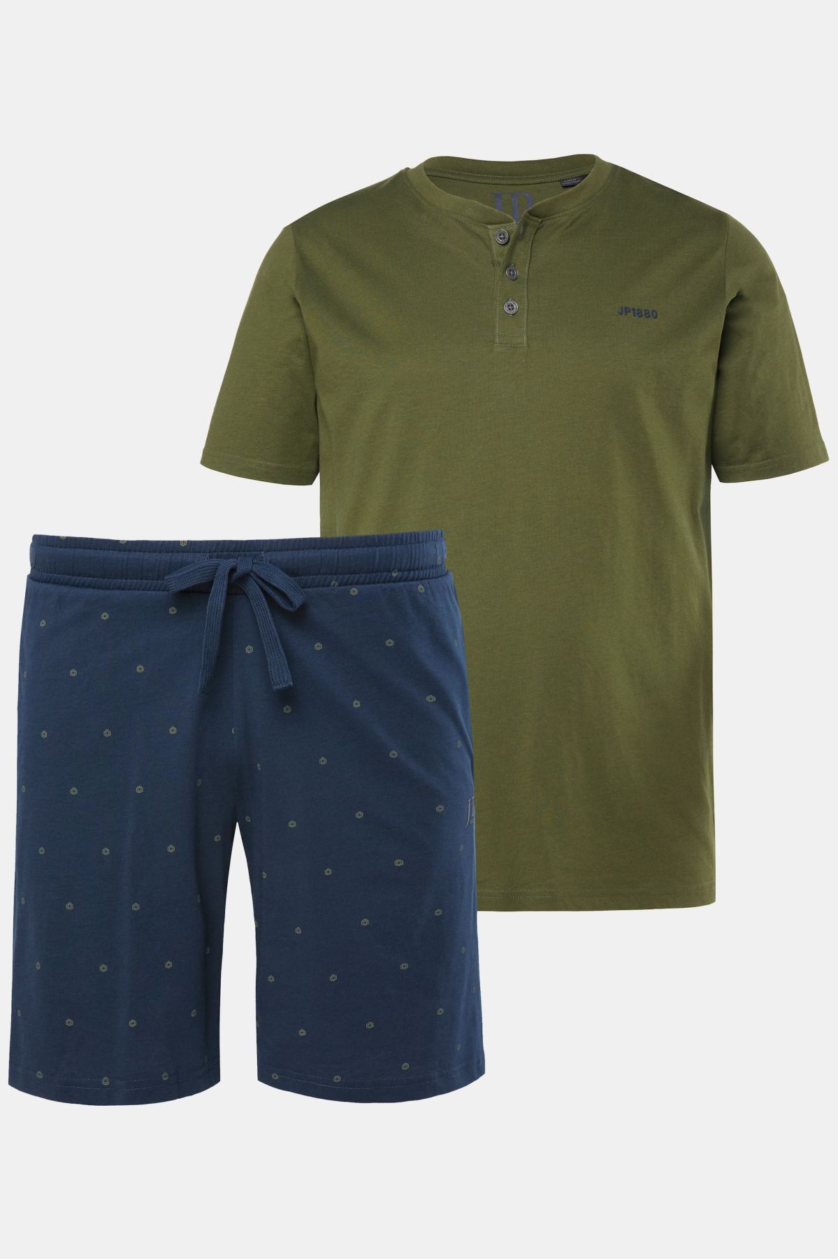 Coupe spéciale jusqu'au 8 XL, T-shirt Henley, Pantalon avec motif minimaliste, Pyjama 2 pièces, Long. selon taille env. 74-86 cm.