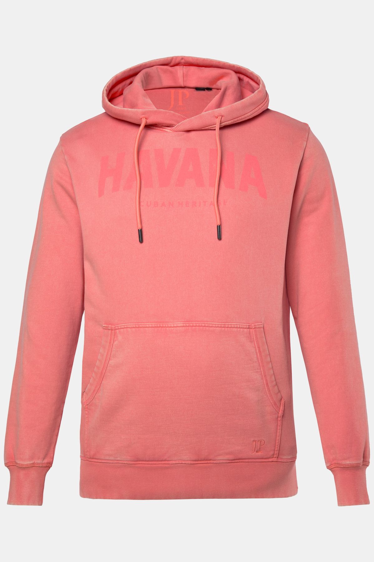 Coupe spéciale jusqu'au 8 XL, Molleton de très grande qualité, intérieur gratté très doux, Capuche avec épais cordon de serrage, Broderie sur la poitrine, Style vintage - délavage acid washed, Long. selon taille env. 74-86 cm.