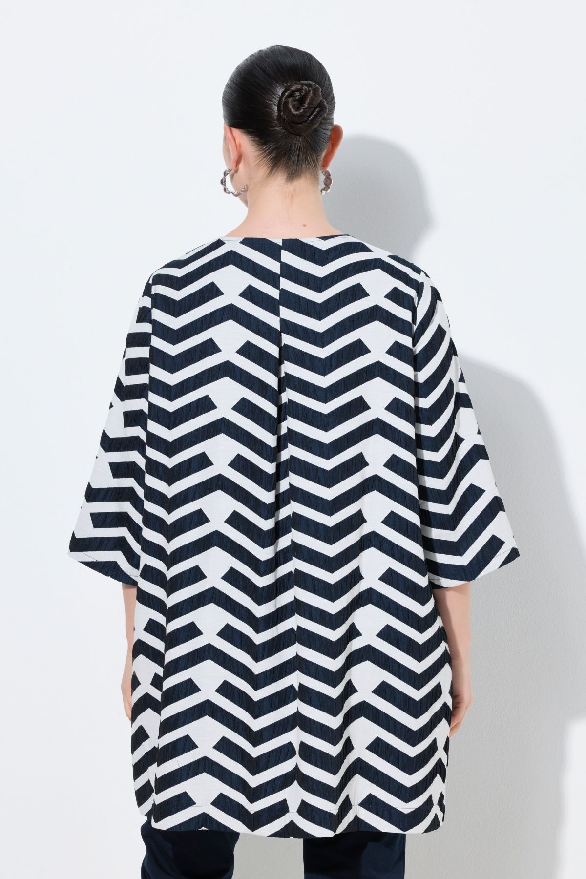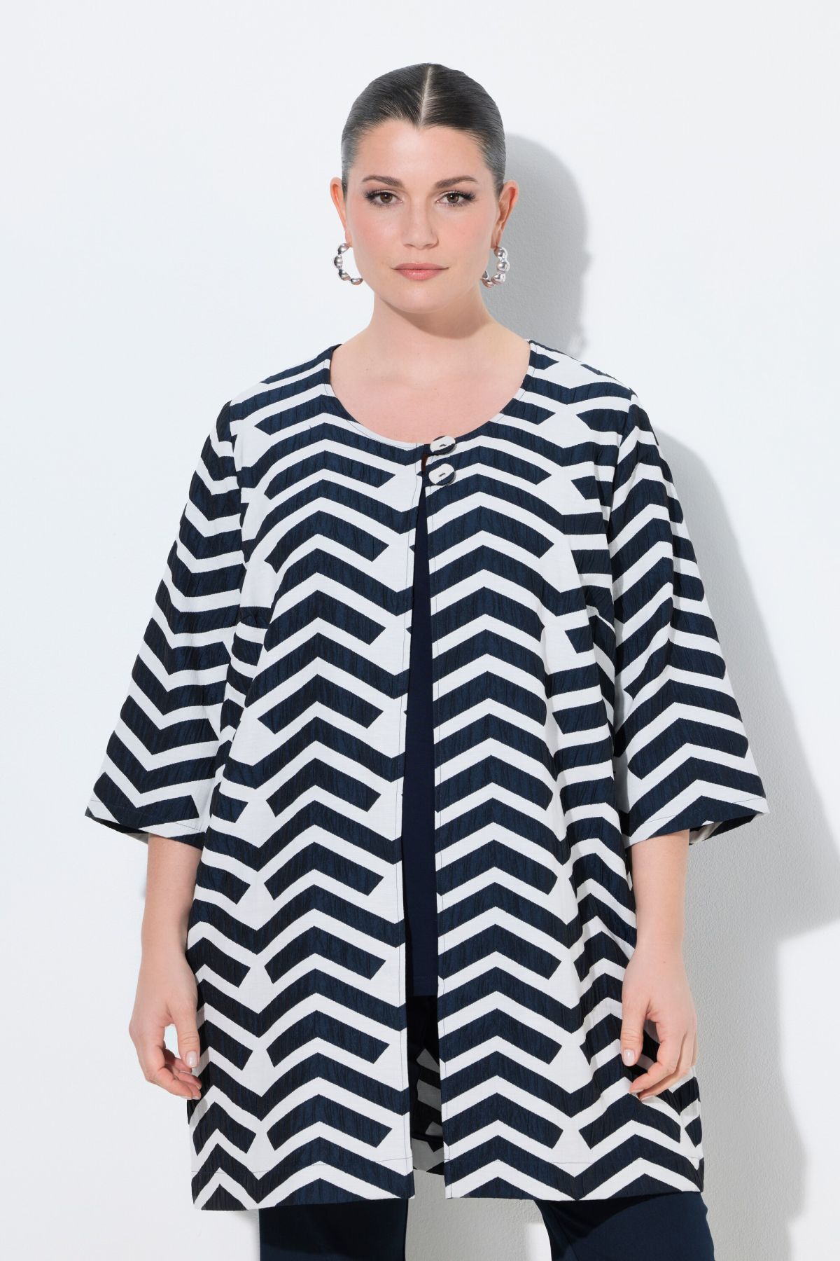 Motif graphique tendance, Décolleté rond, Coupe évasée, 2 boutons recouverts (boutonnière bride), Pli d'aisance dans le dos pour encore davantage de confort, Viscose extensible de grande qualité, Long. env. 88 cm.