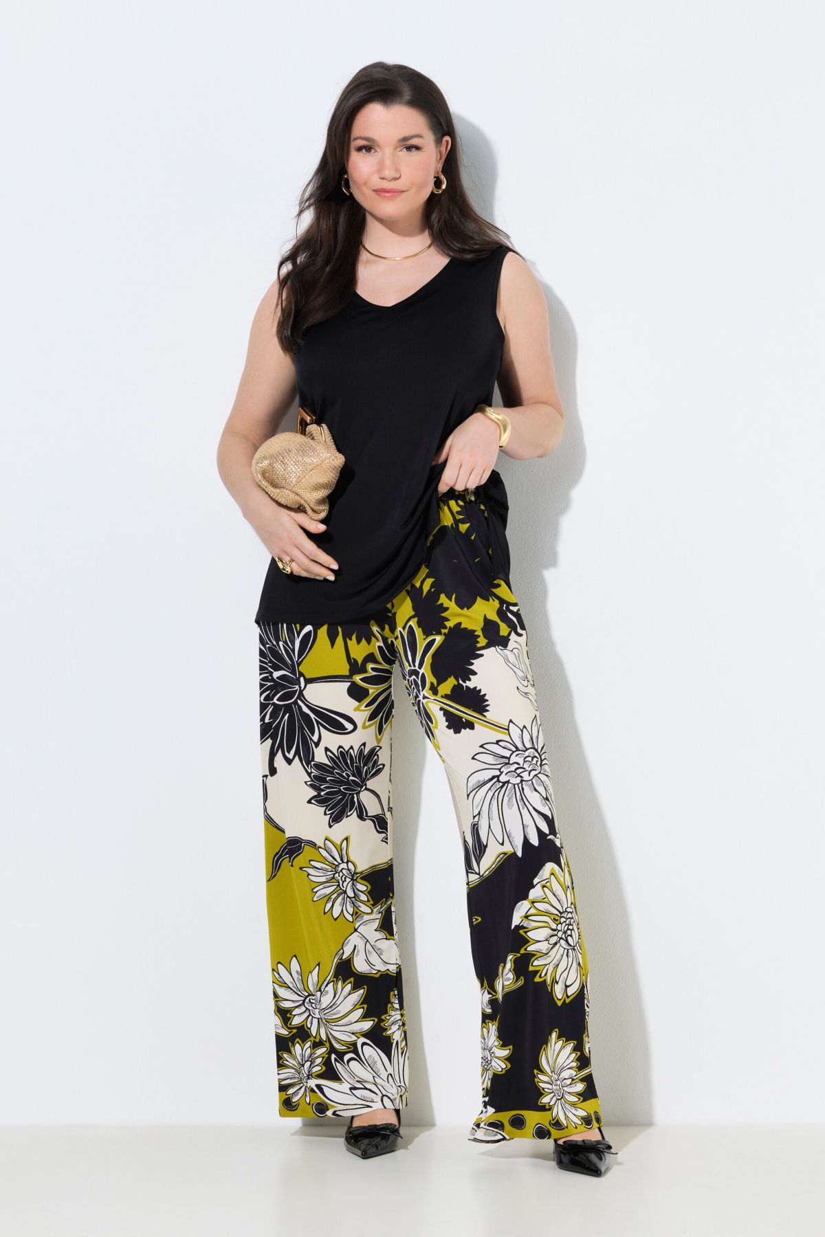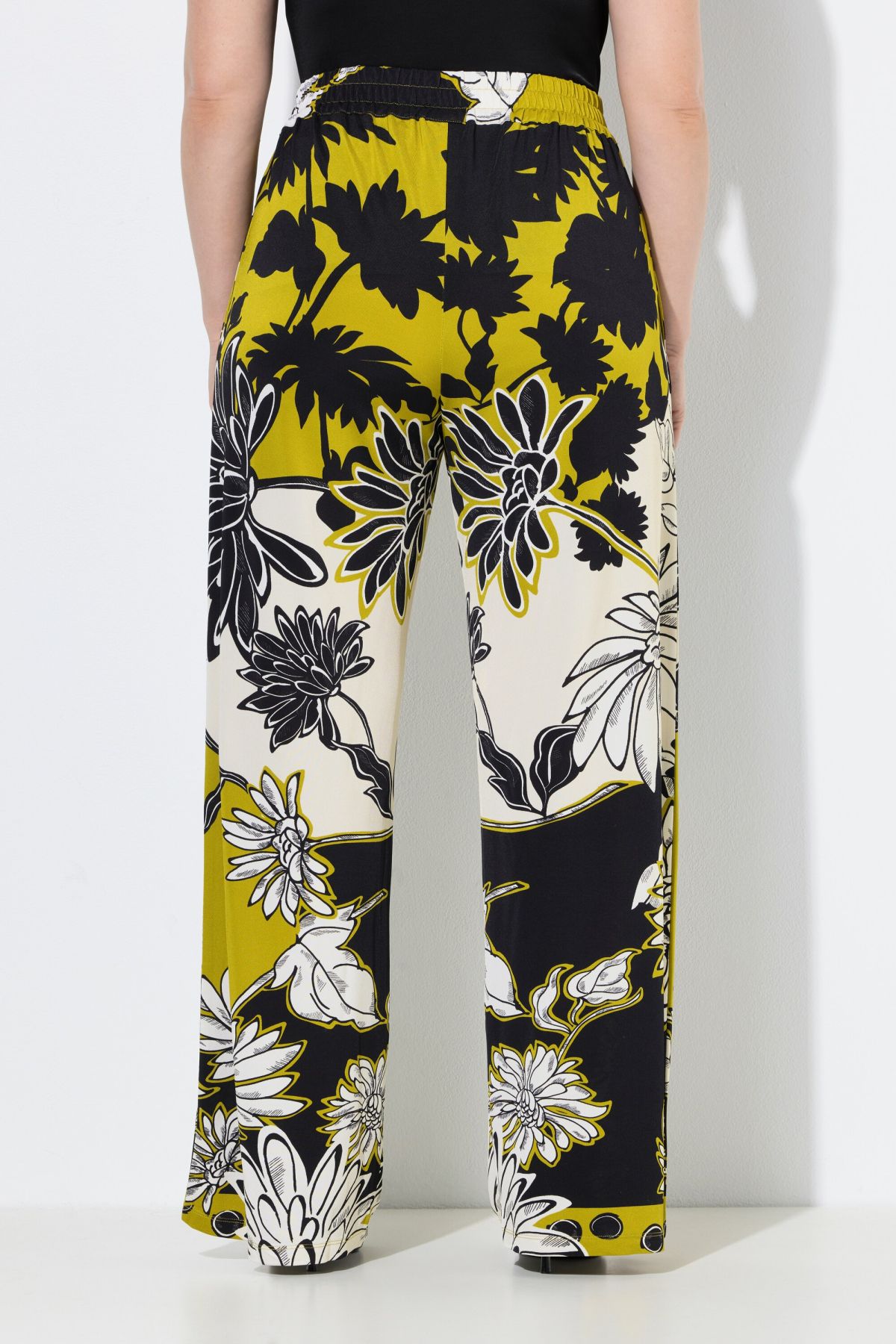 Superbe motif floral, Jambe droite et large, Taille élastique confortable, Matière agréablement élastique, Jersey piqué finement texturé, au tombé fluide et élégant, Entrej. env. 78 cm.