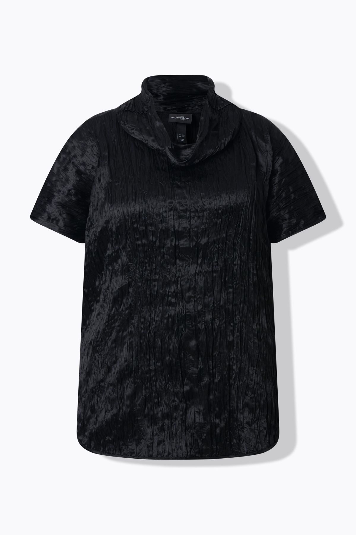 Texture froissée tendance, Col montant fortement évasé, Coupe oversize décontractée, env. 8 cm plus longue dans le dos, Passepoil en satin brillant aux extrémités des manches et à la base, Acétate de grande qualité, Long. selon taille env. 68-76