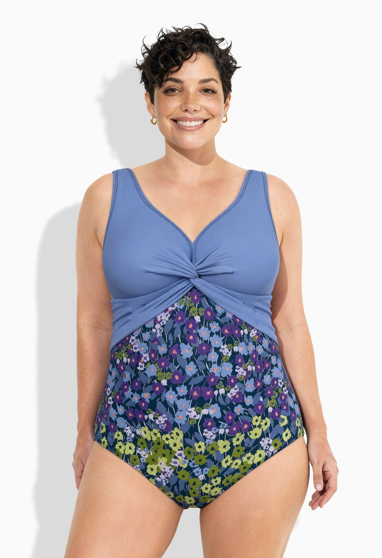 Motif petites fleurs avec effets de couleurs, Buste de couleur unie, avec nœud fantaisie, Bonnets souples et bande de soutien sous la poitrine, Doublure poitrine douce et confortable, Contient du polyamide recyclé, plus respectueux de l'environnement