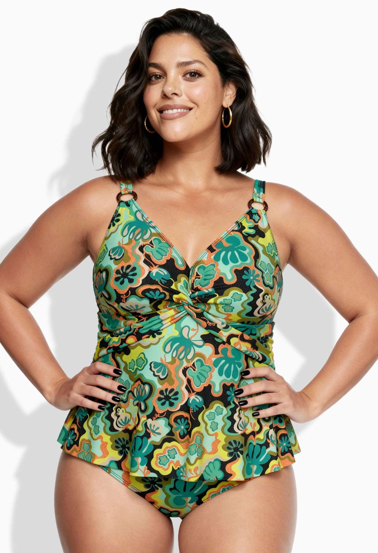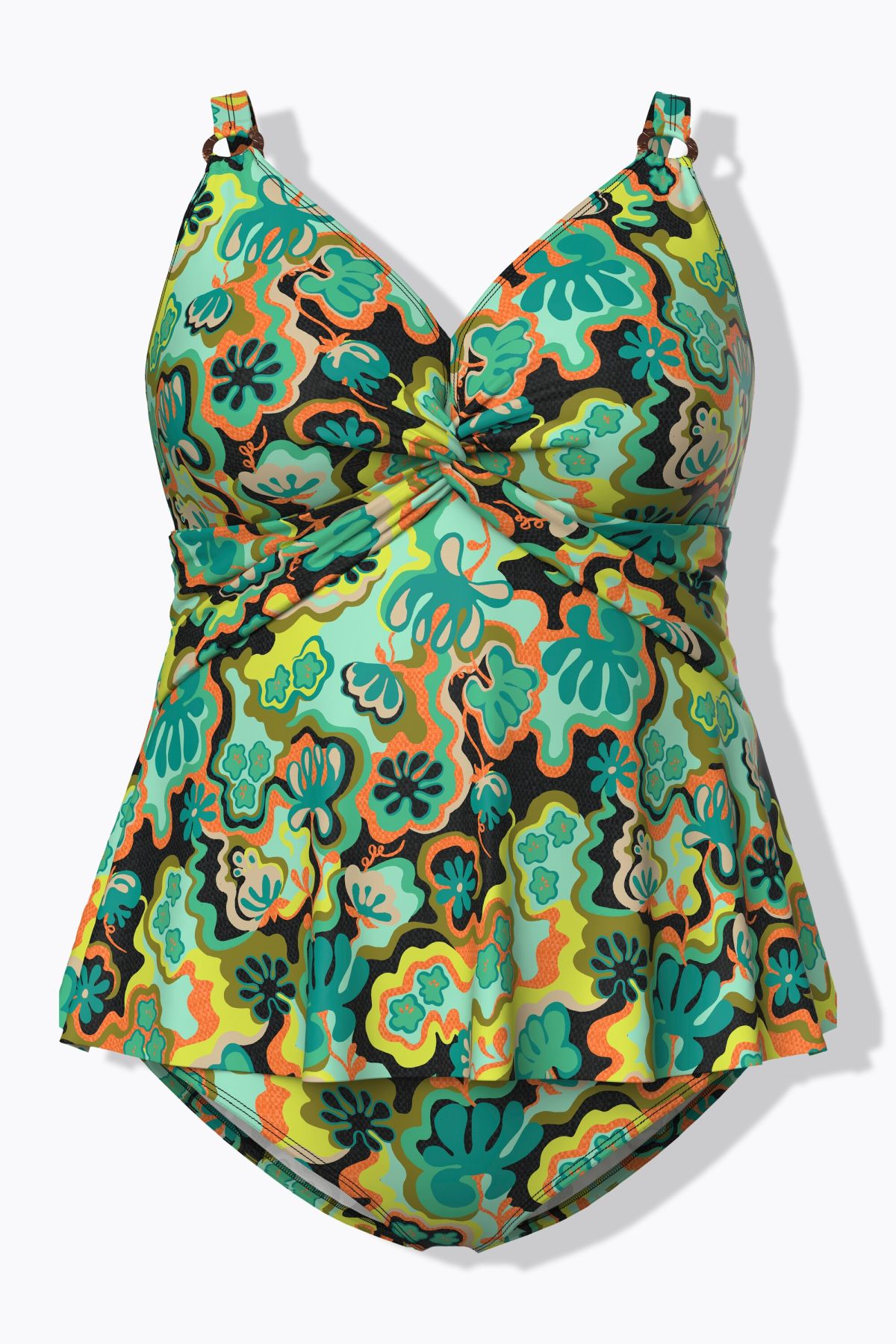 Motif bohème tendance, Haut plus long, buste avec effet drapé, Bretelles ajustables avec anneau fantaisie, Bonnets souples et bande de soutien sous la poitrine, Contient du polyamide recyclé, plus respectueux de l'environnement