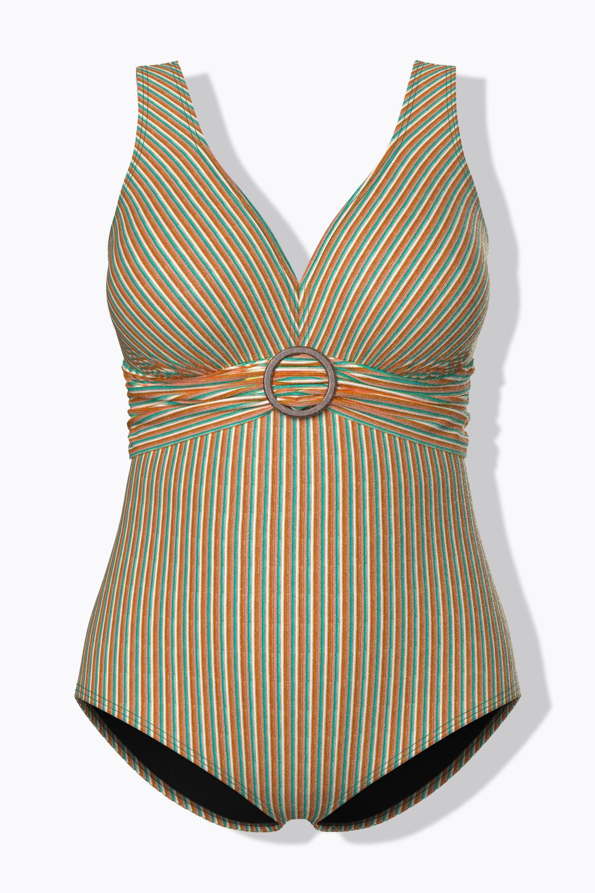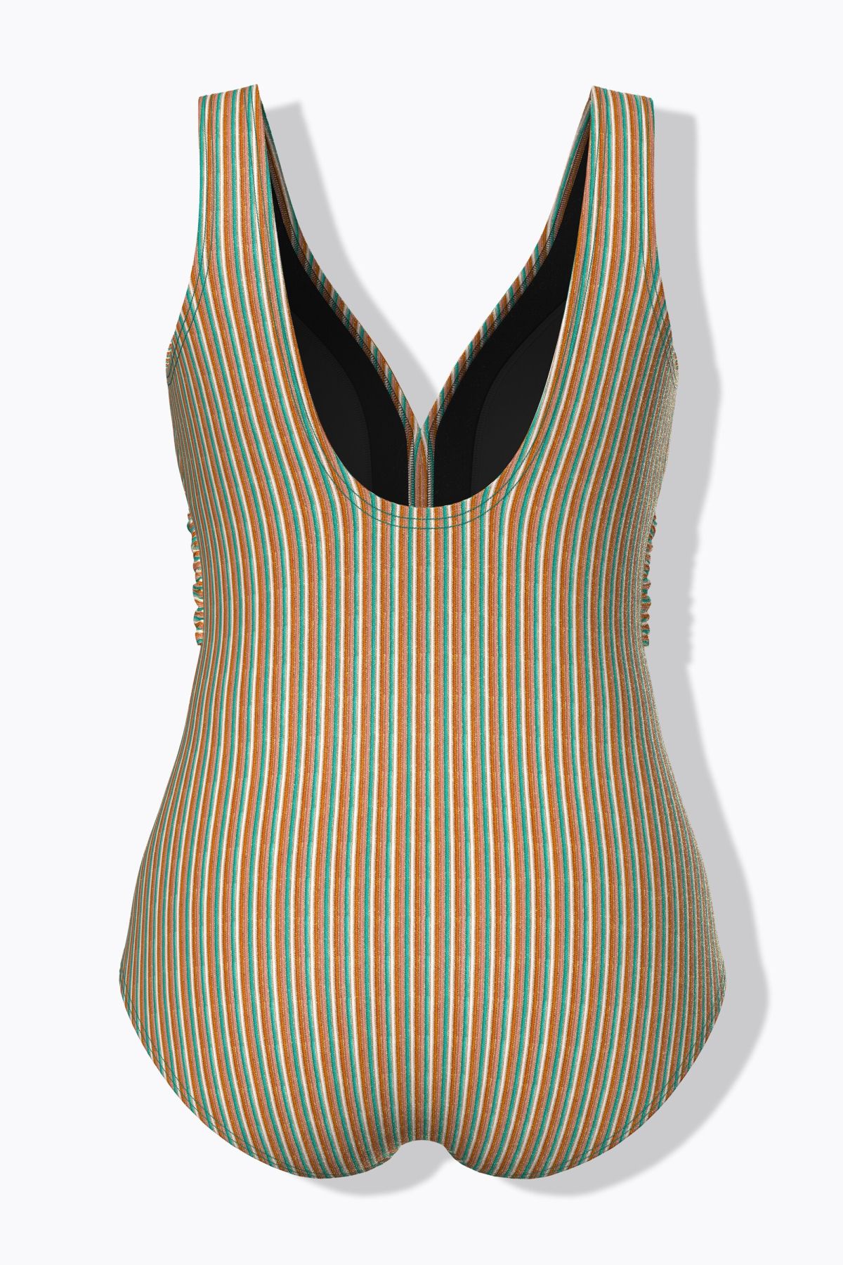 Tissu texturé à fines rayures, Bande fantaisie avec anneau sous le buste, Bonnets souples et bande de soutien sous la poitrine, Doublure poitrine douce et confortable, Dos extrêmement plongeant