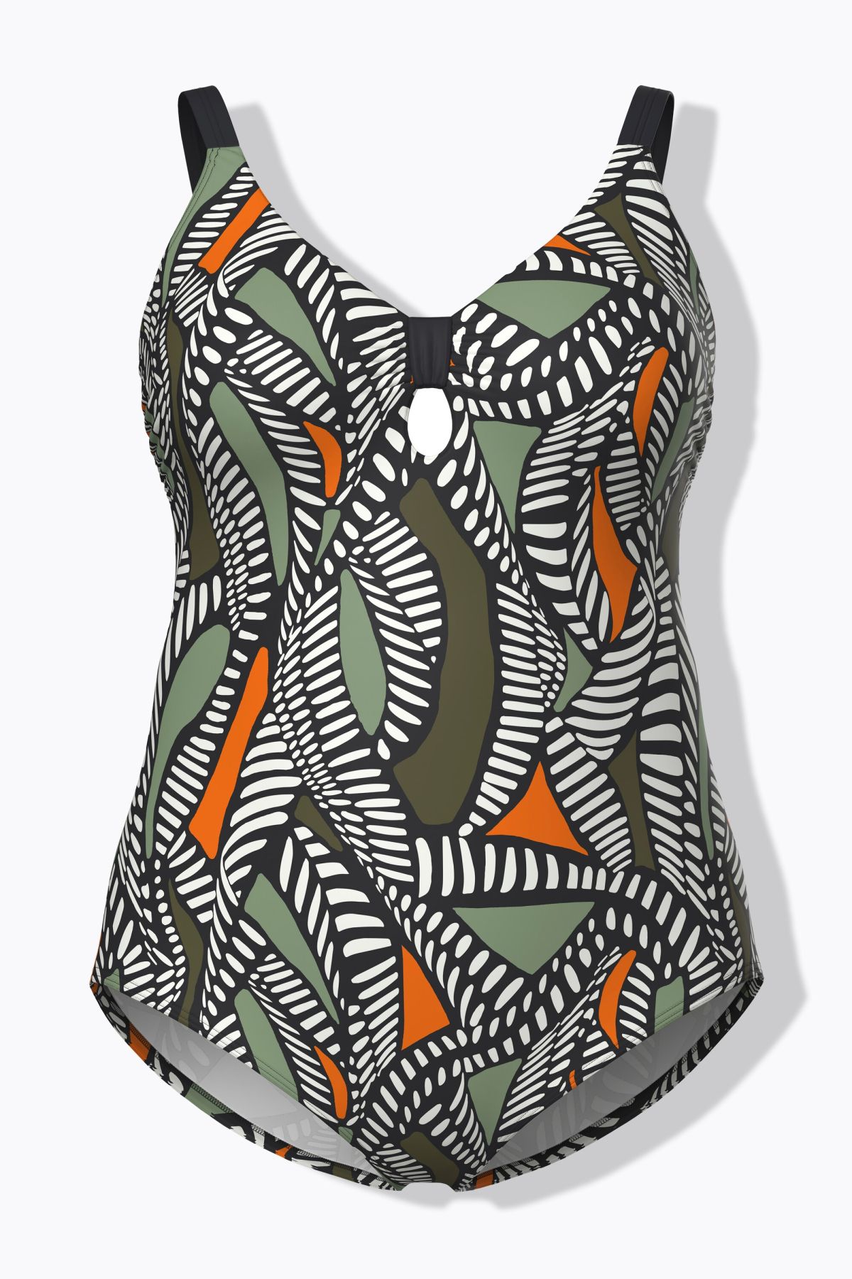 Imprimé graphique tendance, Nœud fantaisie avec une petite découpe entre les bonnets, Bonnets souples et bande de soutien sous la poitrine, Doublure poitrine douce et confortable, Contient du polyamide recyclé, plus respectueux de l'environnement