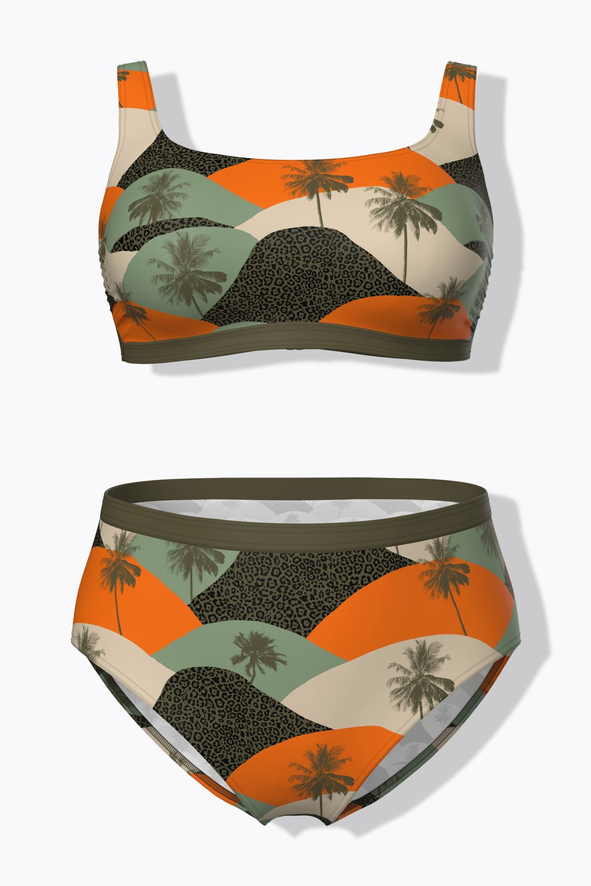 Bikini motif palmiers, bonnets souples et bretelles ajustables
