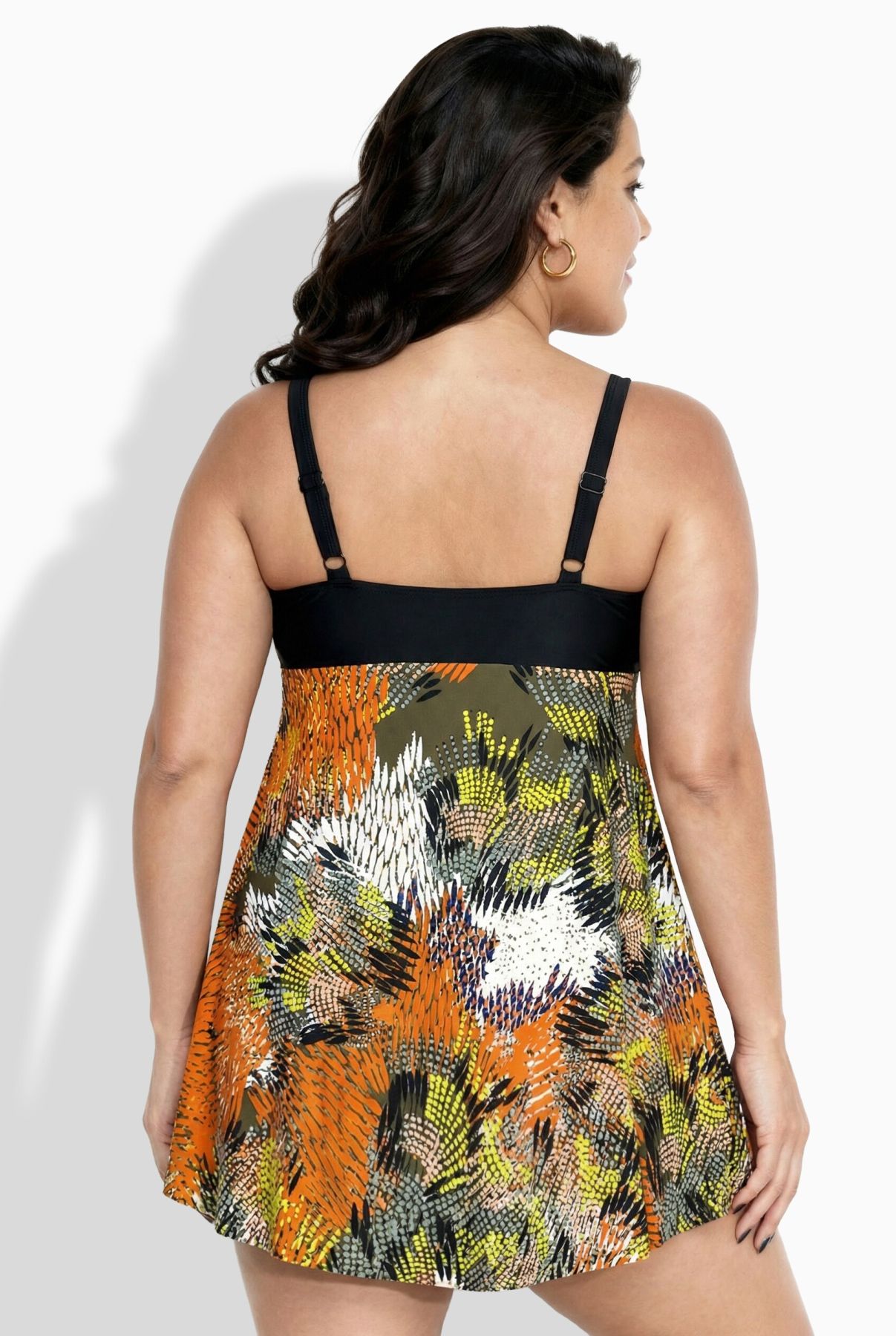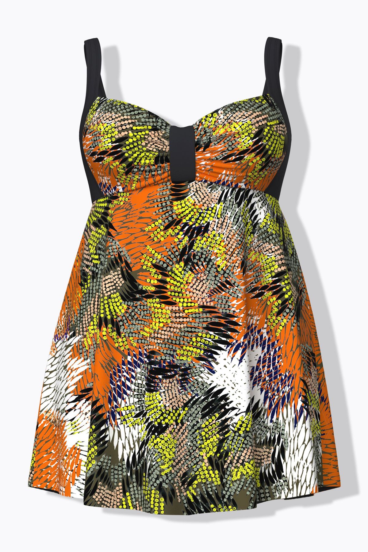 Motif jungle tendance, Robe de bain à bonnets souples, maillot de bain intégré, Bande fantaisie entre les bonnets, effet drapé, Bande de soutien sous la poitrine, doublure intégrale, Contient du polyamide recyclé, plus respectueux de l'environnement