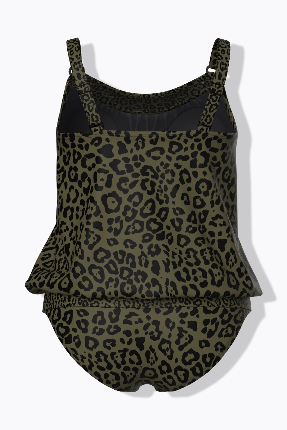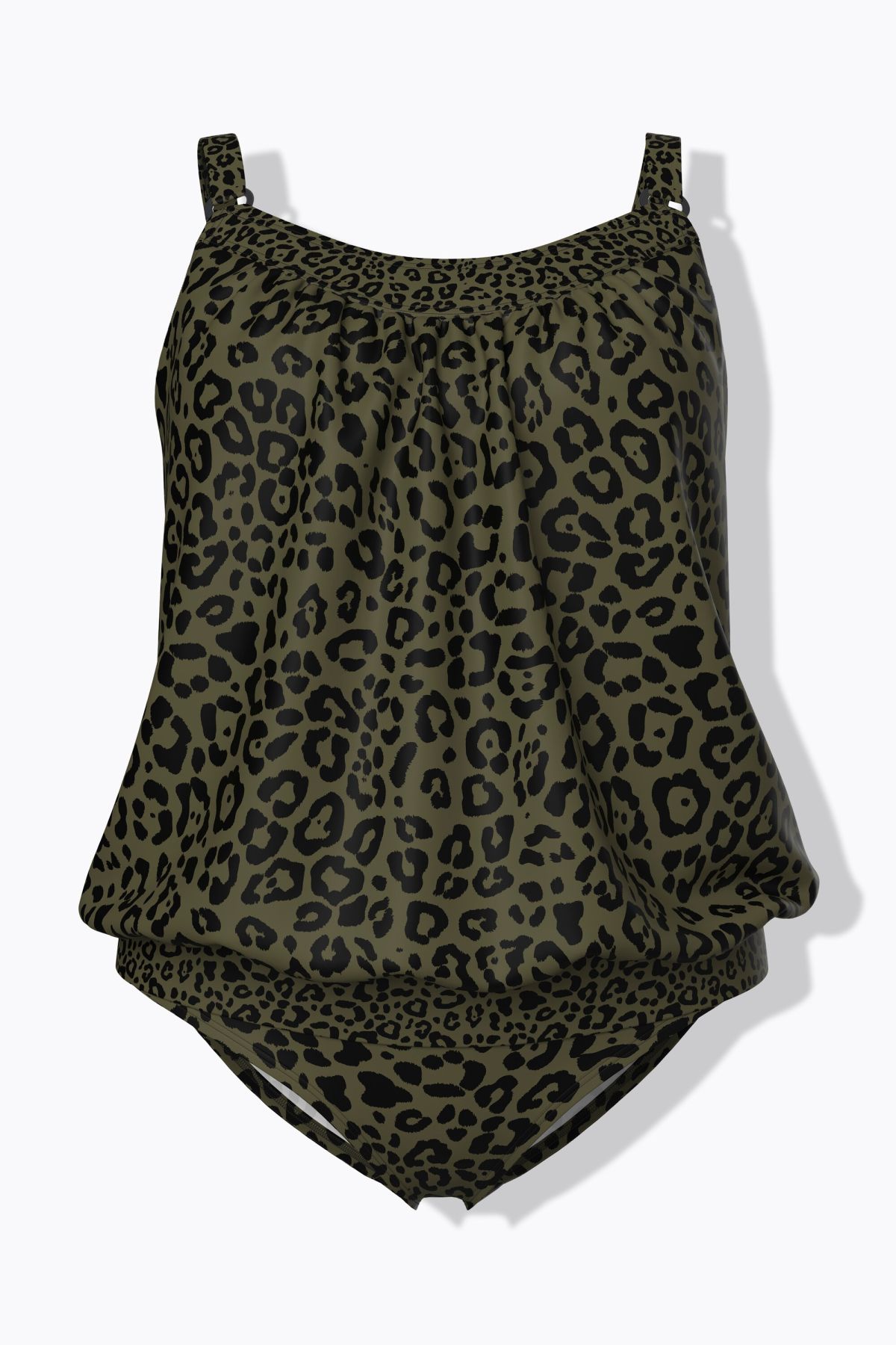 Motif léopard tendance, Bonnets souples et bande de soutien sous la poitrine, Bretelles ajustables avec anneau fantaisie, Haut plus long avec base élastique, Slip de bain assorti