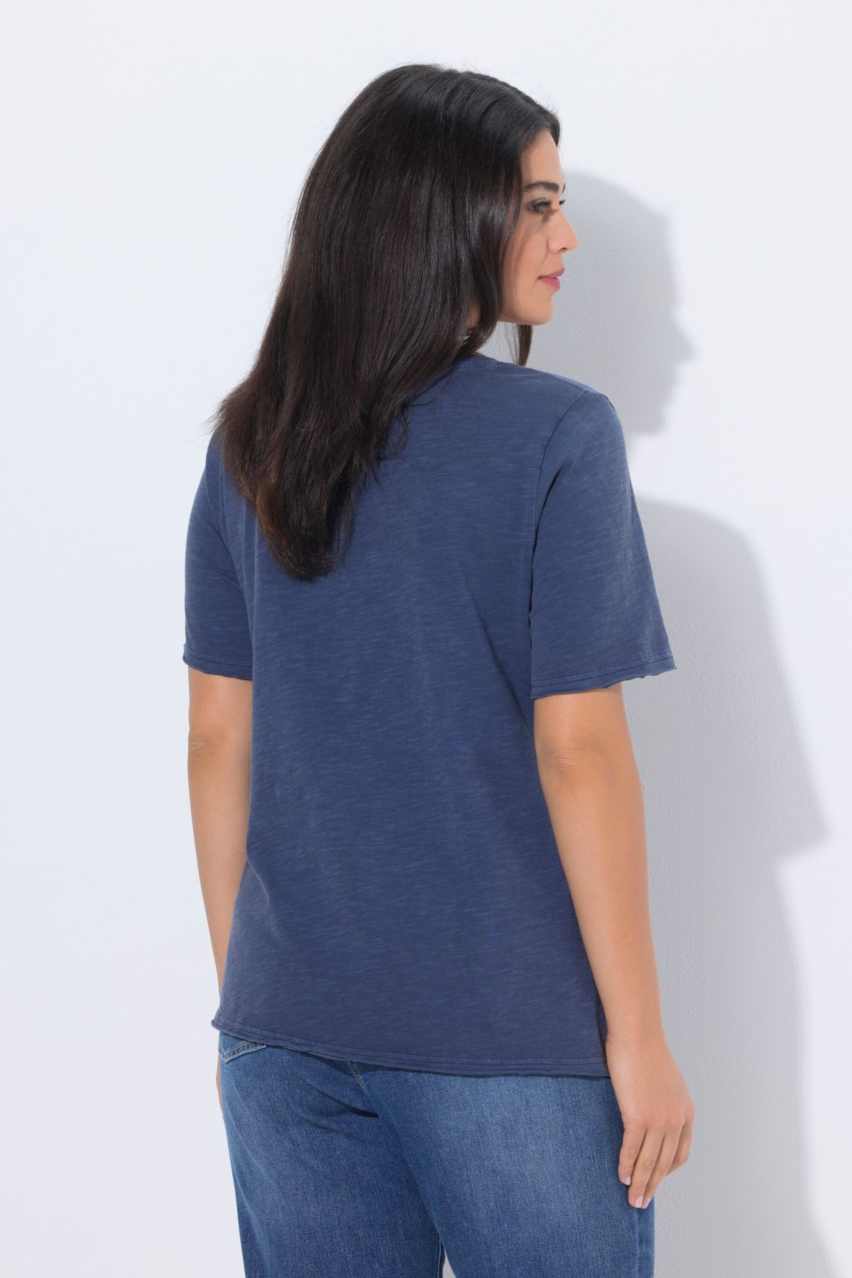 Tissu jersey finement texturé, motif papillon, Décolleté en V arrondi, Coupe Classic Fit, Manches courtes, Pur coton, Long. selon taille env. 68-76 cm.