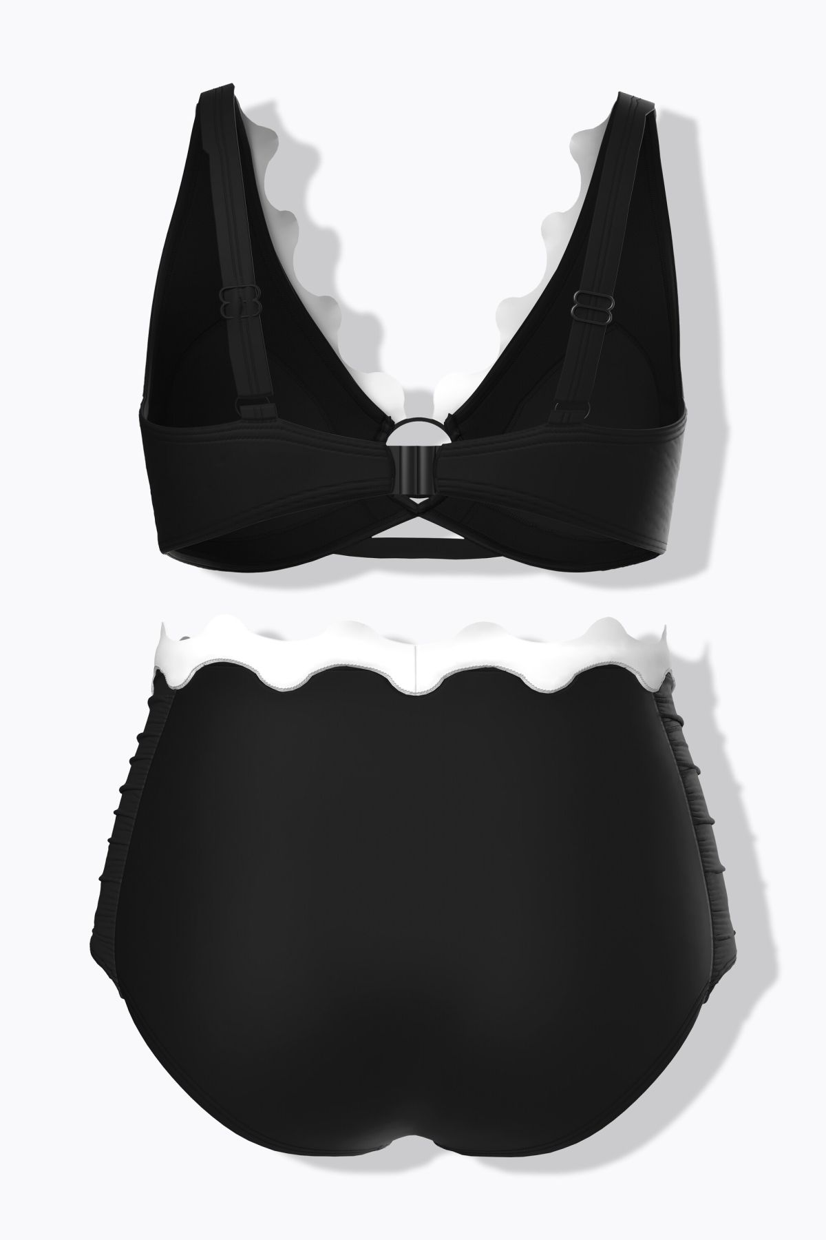 Finitions fantaisie en forme de vague, Haut avec bonnets souples et anneau fantaisie, Bretelles ajustables, Doublure Powermesh, Contient du polyamide recyclé, plus respectueux de l'environnement