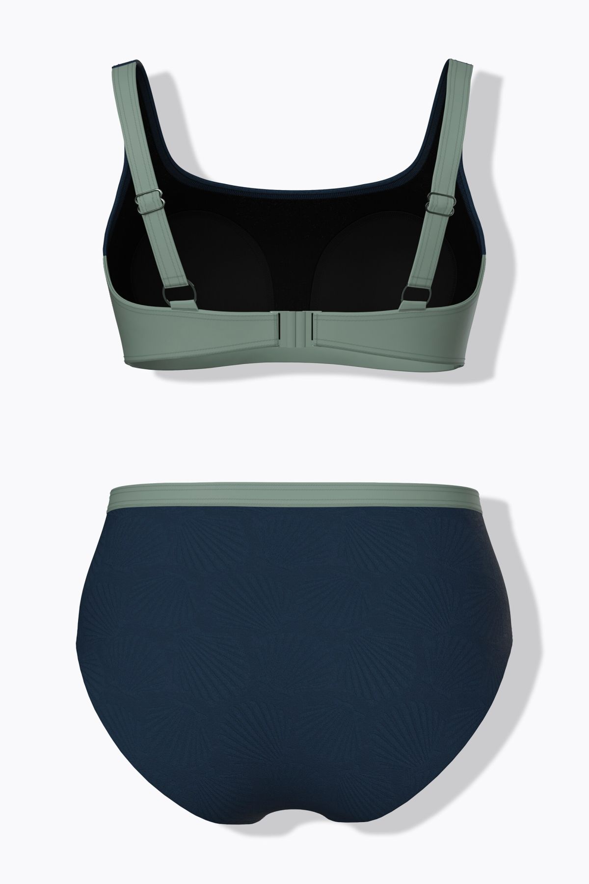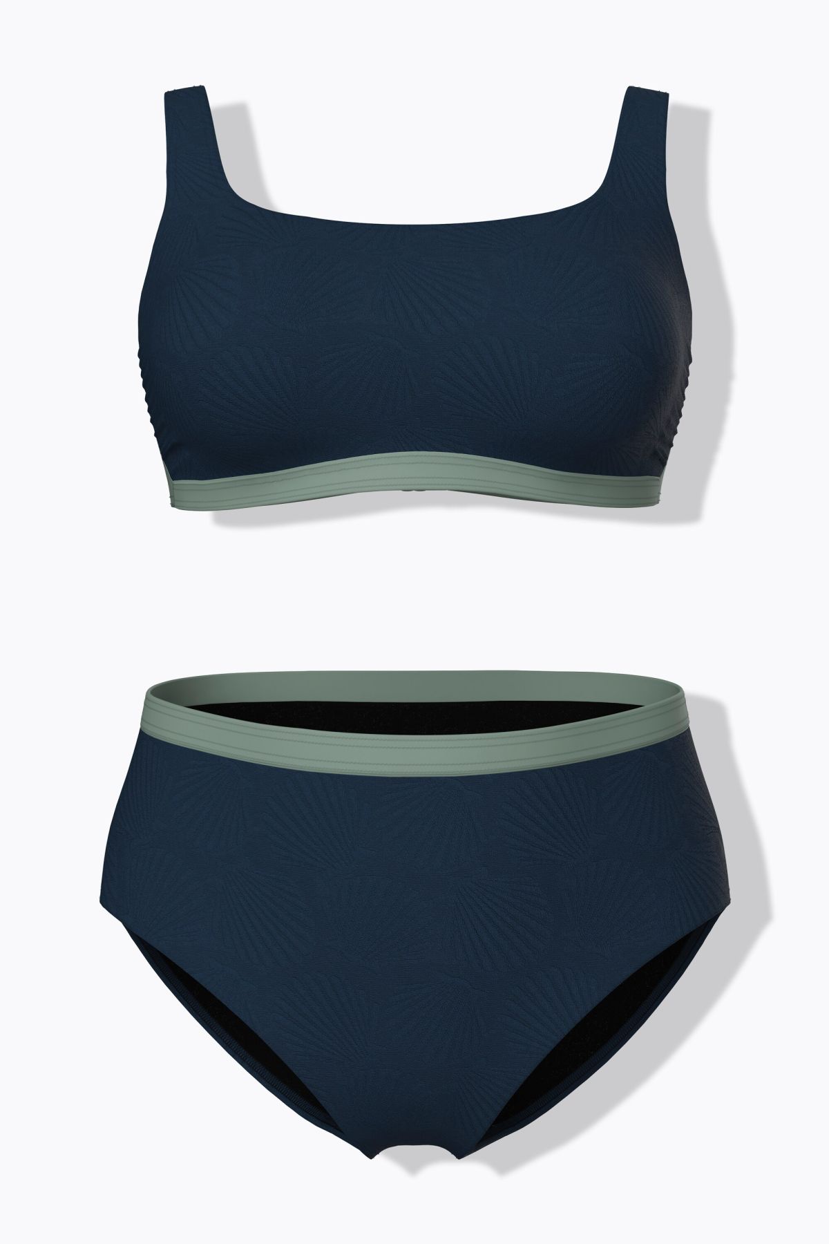 Matière élégamment texturée, motif coquillages, Bonnets souples et bande de soutien sous la poitrine, Bretelles ajustables, Doublure intégrale, Slip de bain assorti