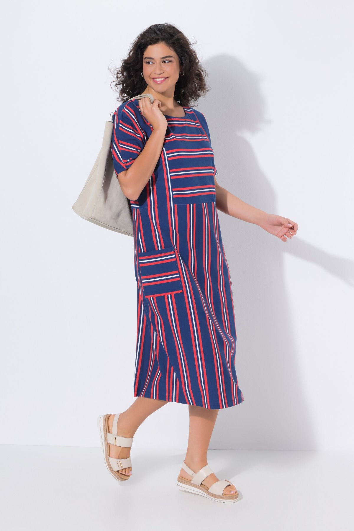 Jeu de rayures tendance, Décolleté rond, Coupe confortable, Deux poches plaquées, Coton naturel enrichi en élasthanne, Long. env. 114 cm.